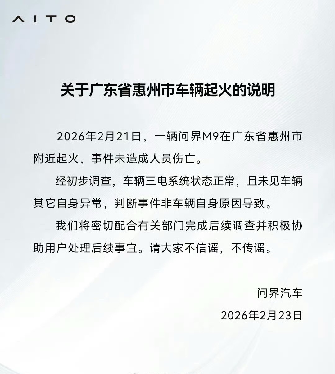 问界M9起火声明不是电池起火!