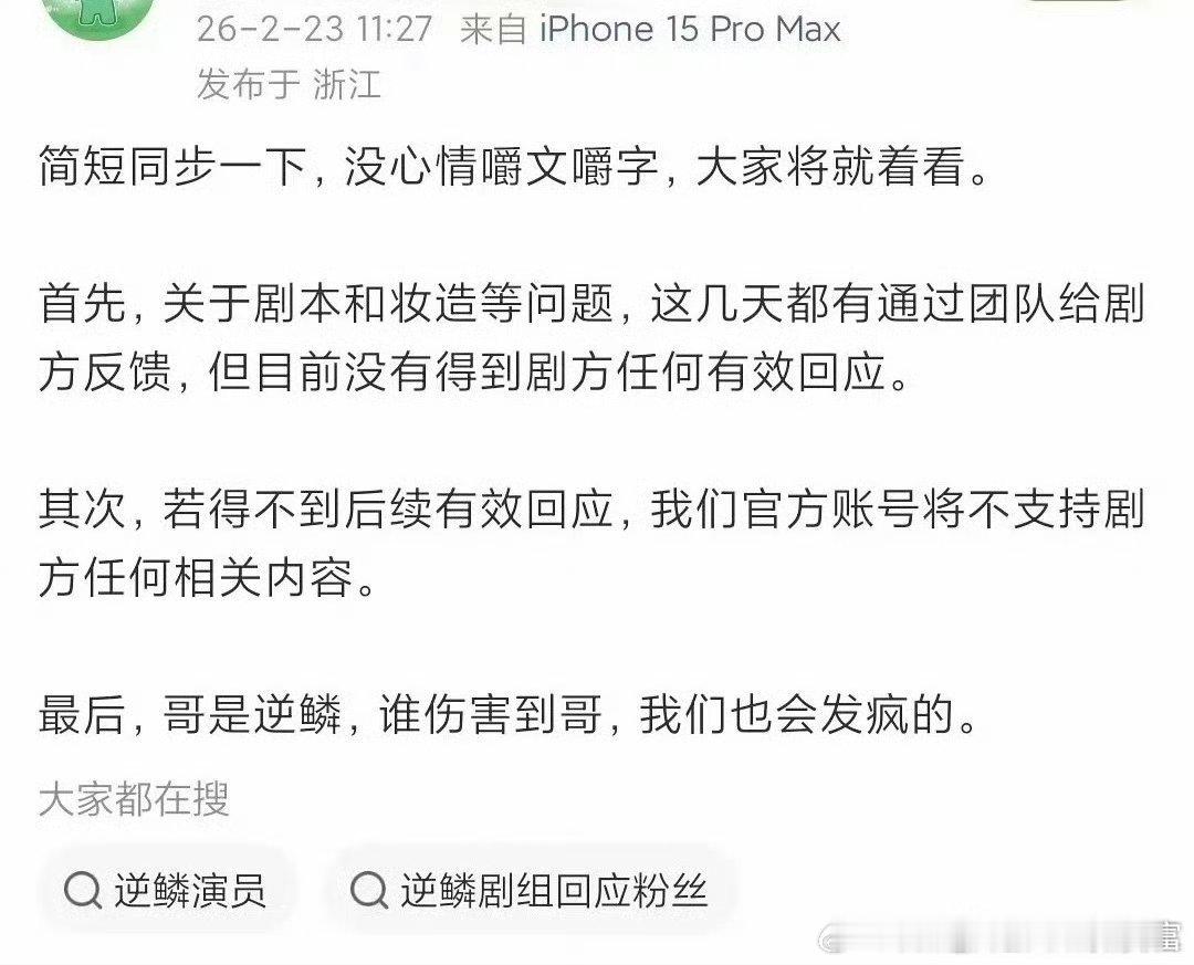 《不让江山》发布声明,否认“阴阳剧本”“私下加戏”,网传剧本并非最终定稿剧本,网