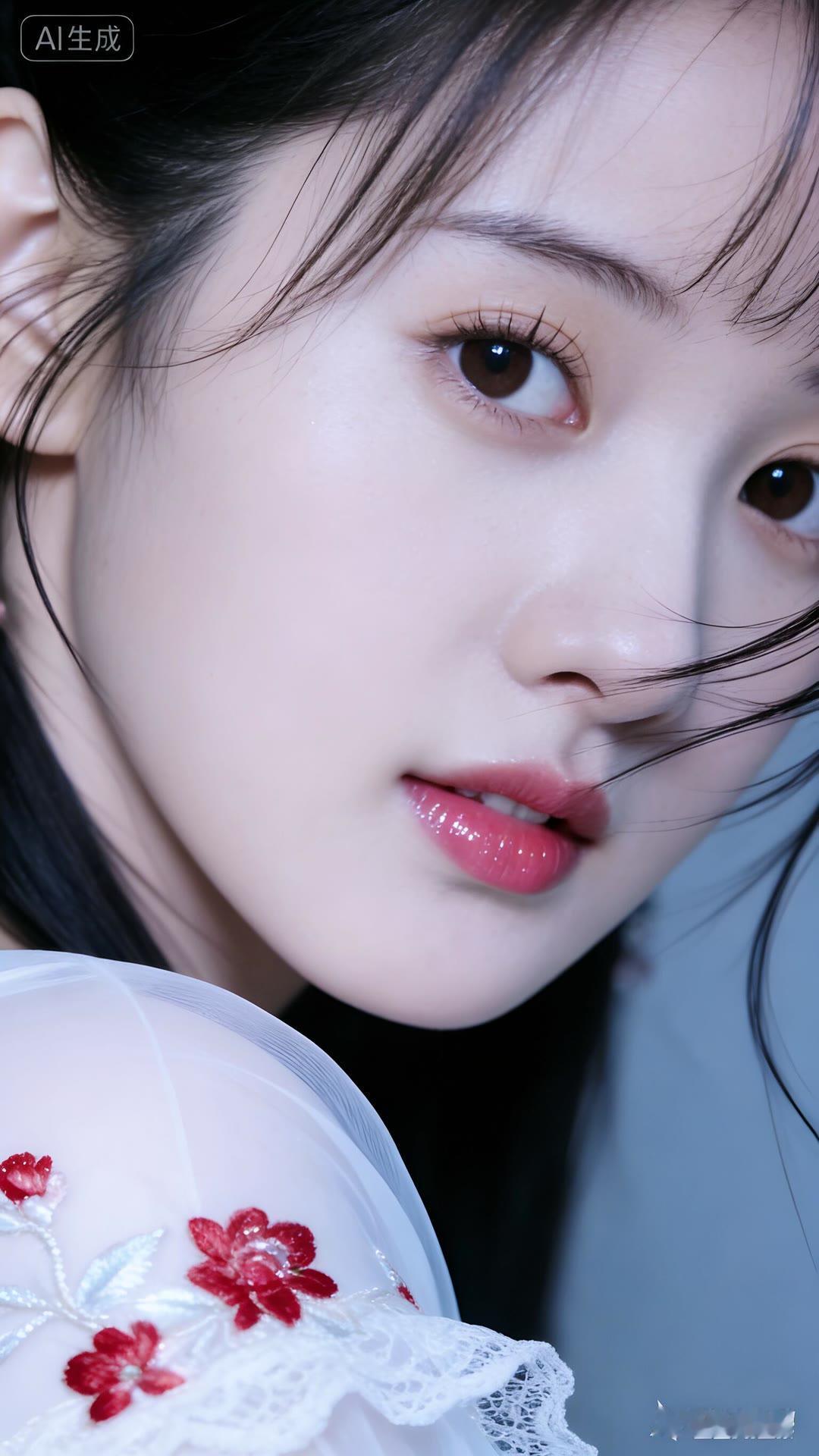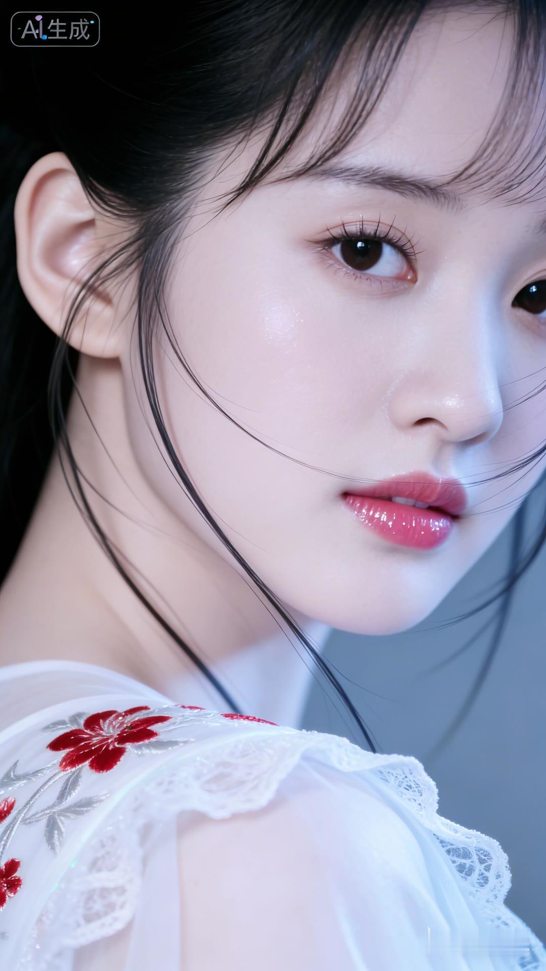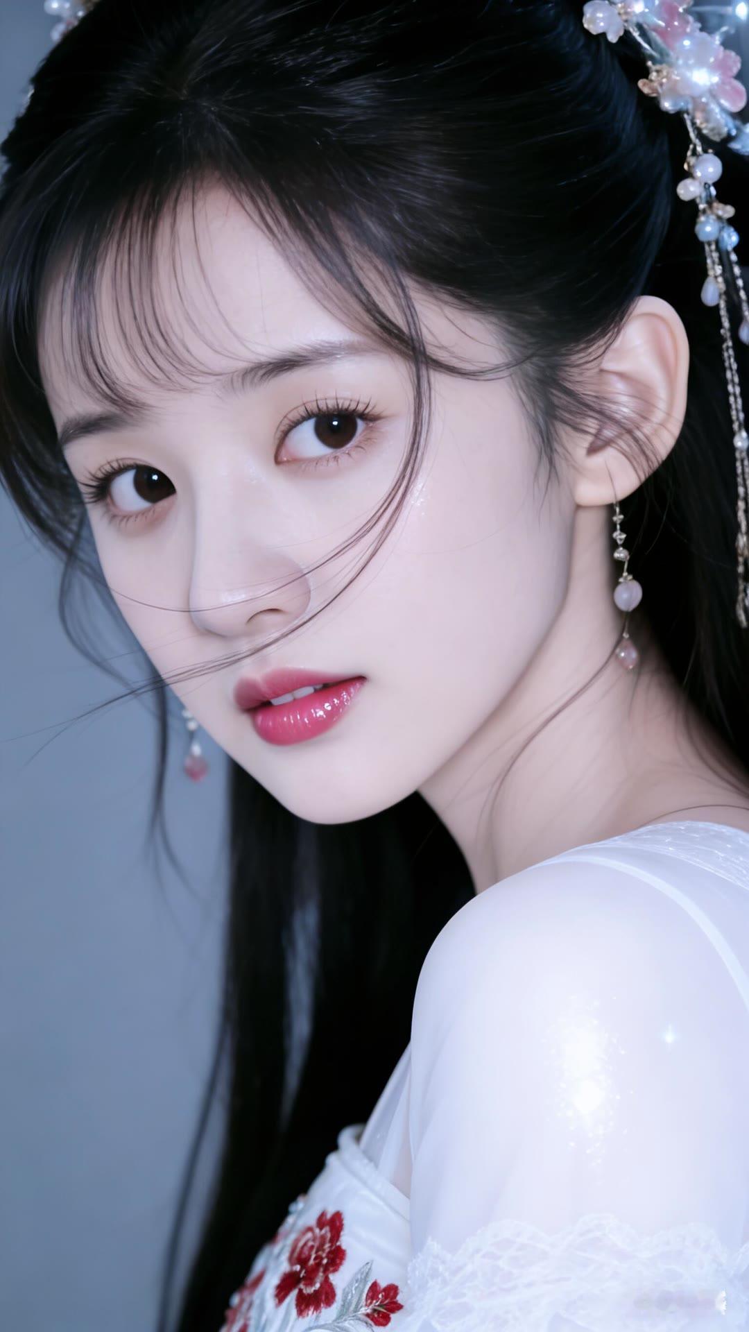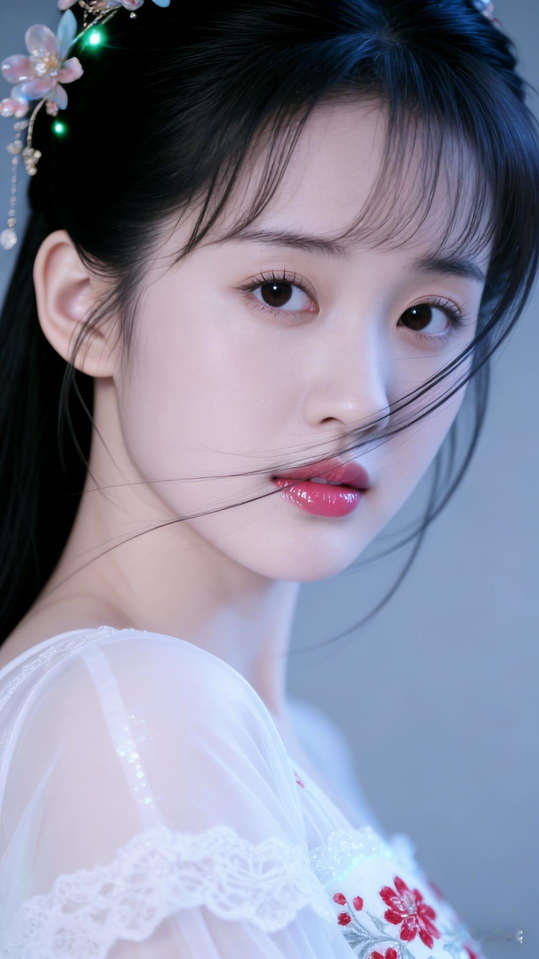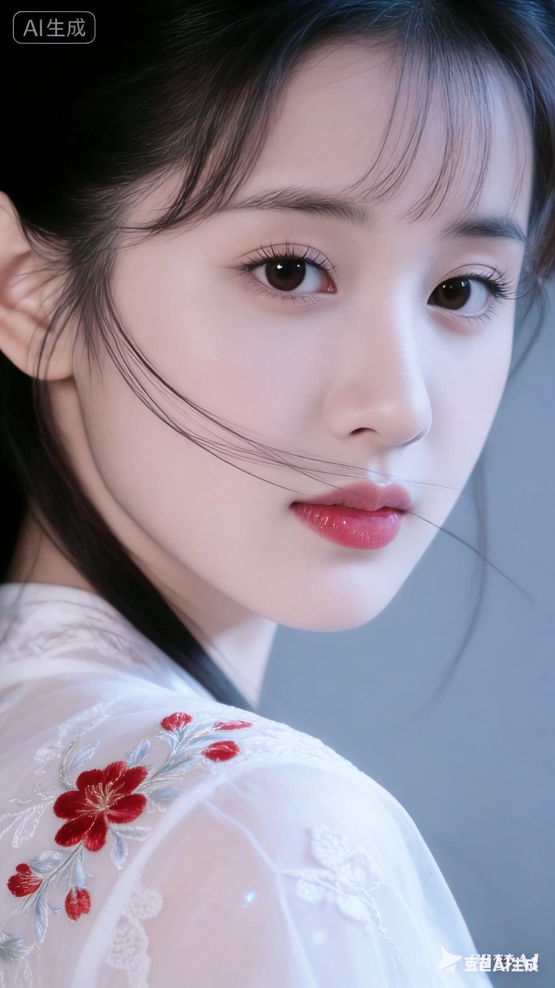 清丽脱俗的古典美人,红唇与白衣相映成趣,宛如画中仙子。