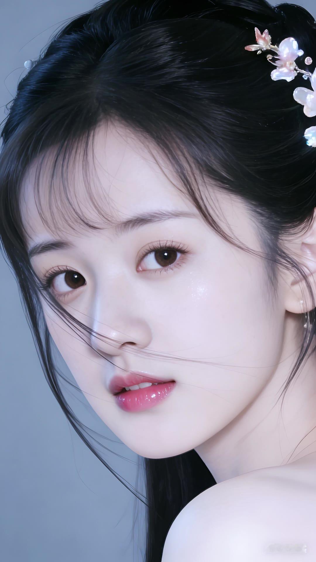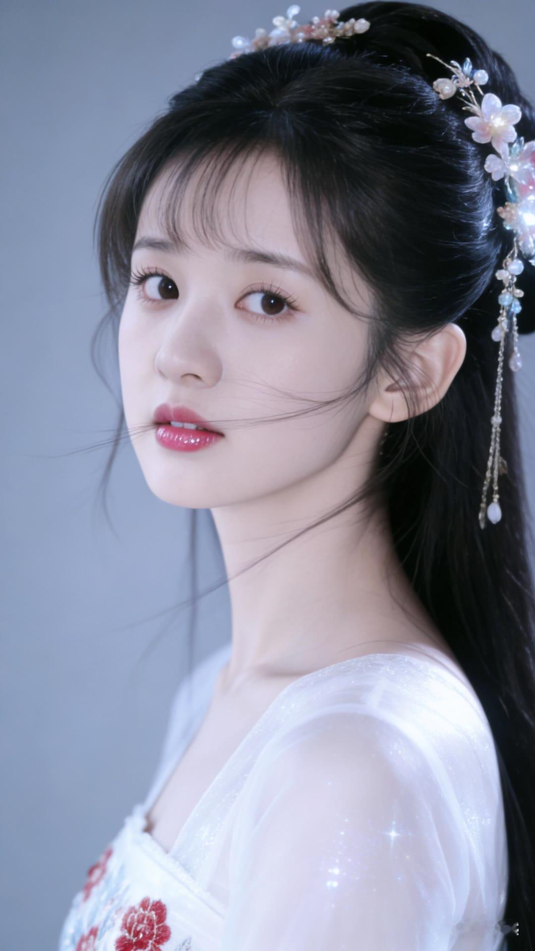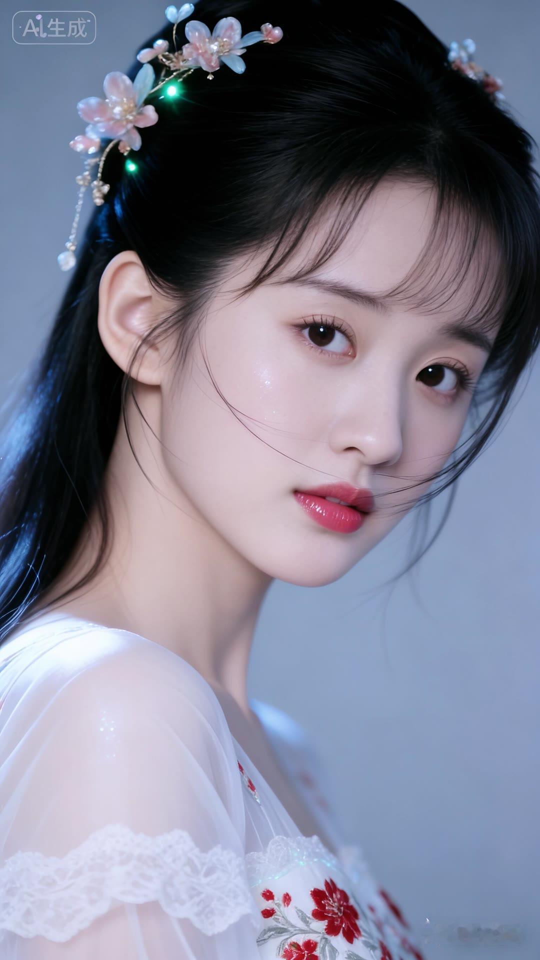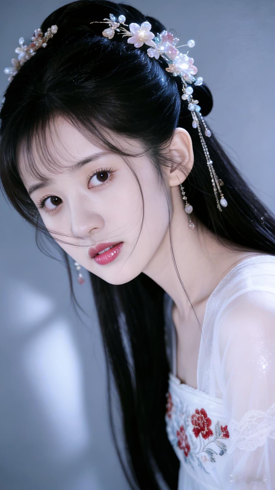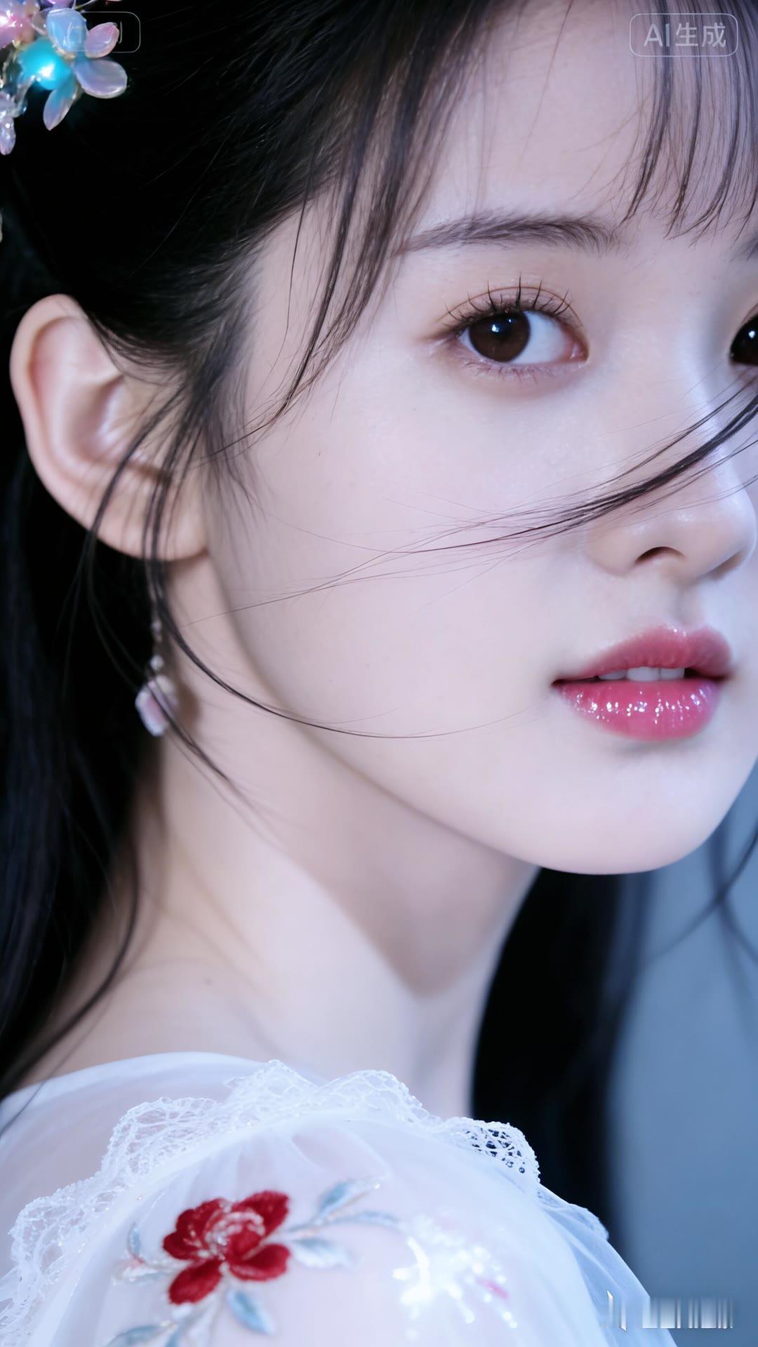 清丽脱俗的古典美人,红唇与白衣相映成趣,宛如画中仙子。