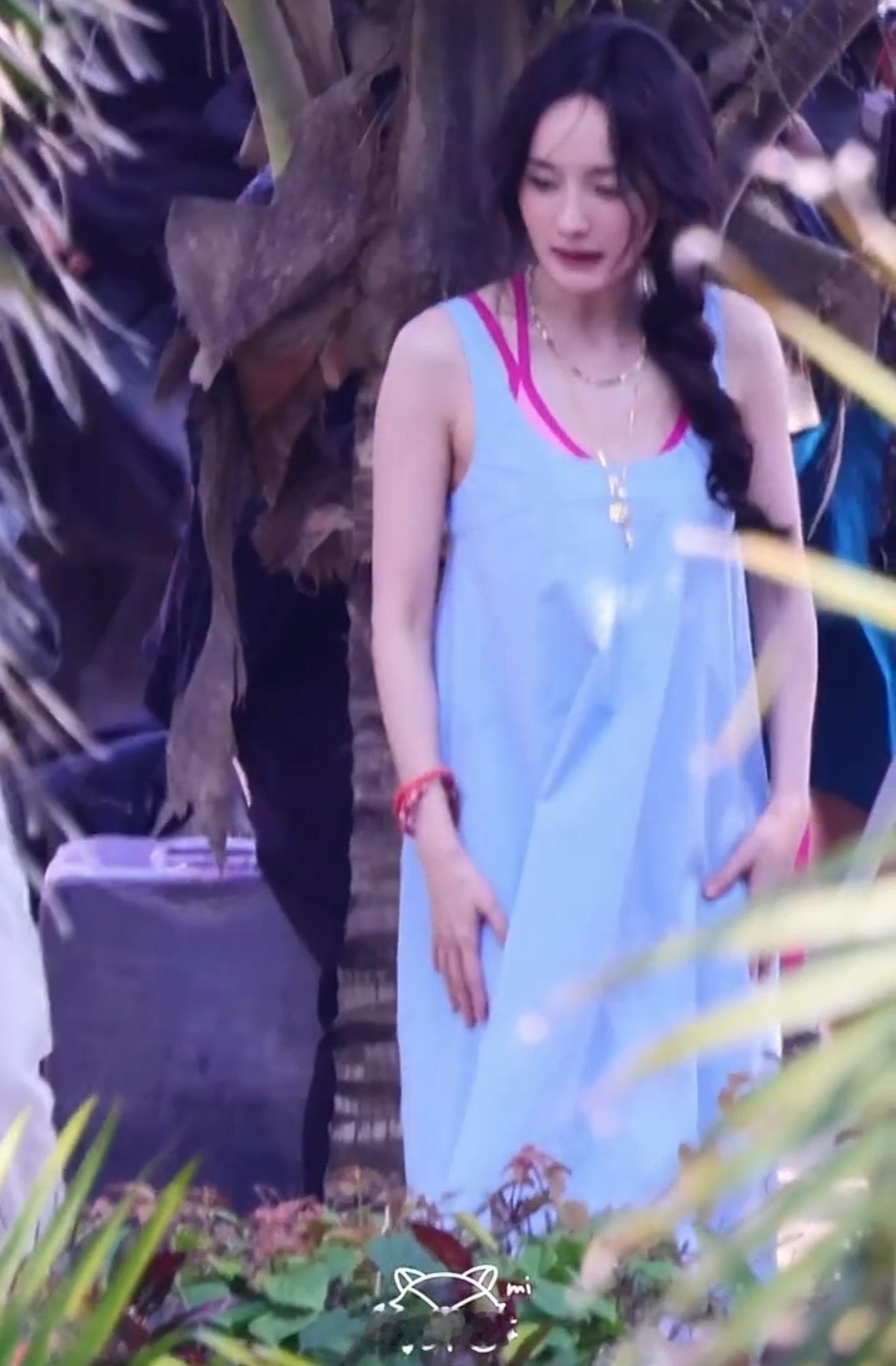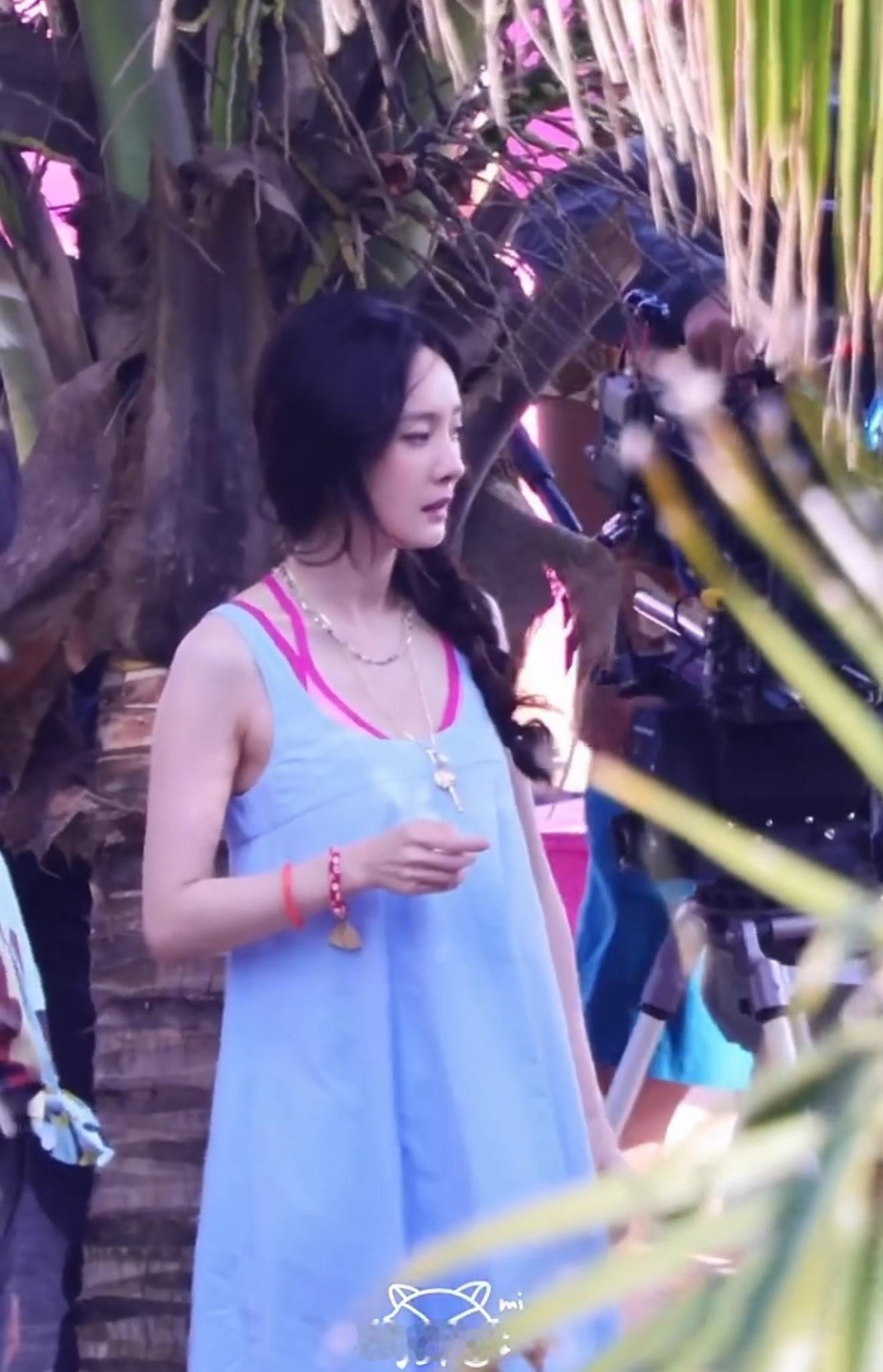 杨幂侧麻花辫➕蓝粉色吊带裙造型好美,邻家小姐姐即视感。