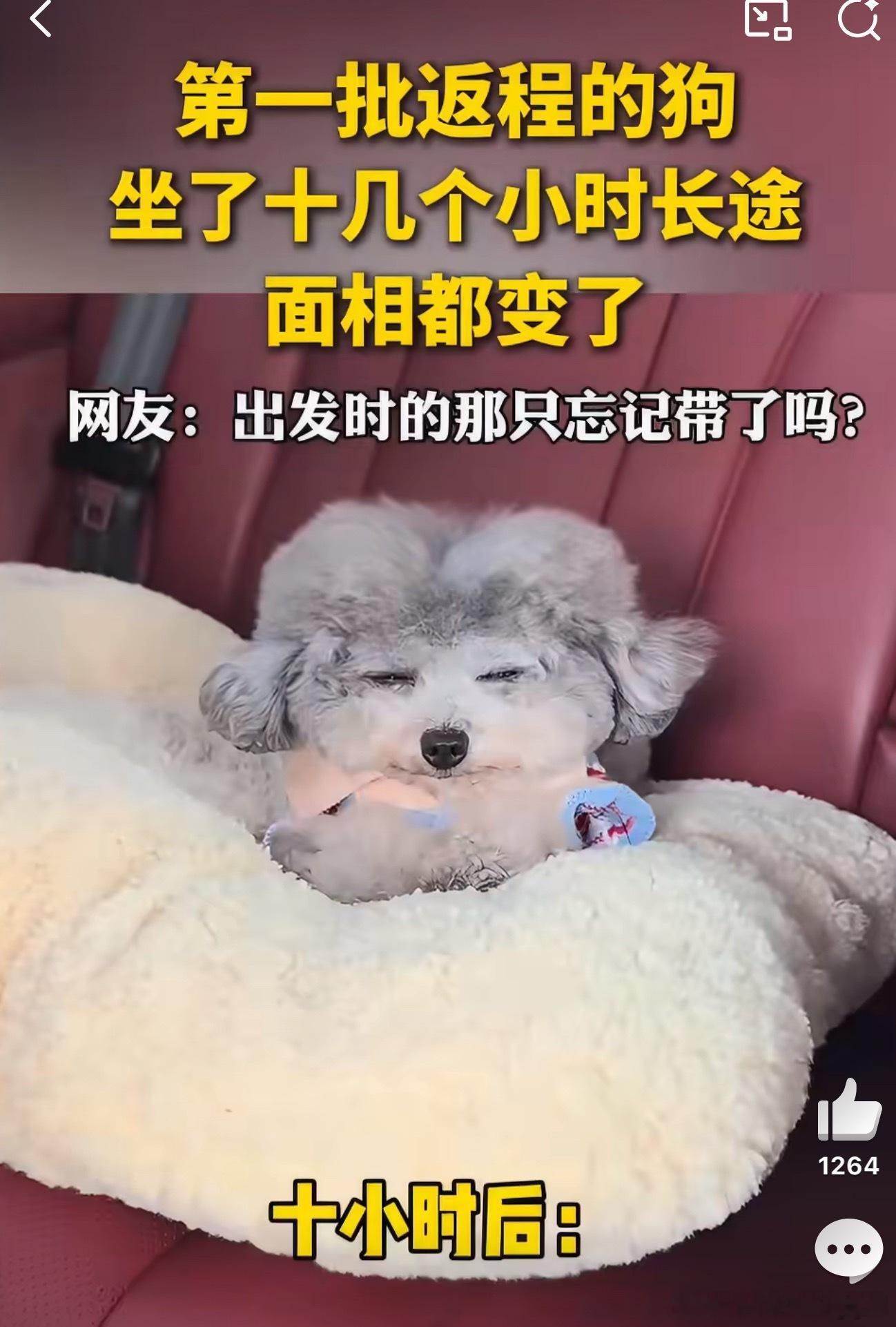 小狗坐十几个小时长途面相都变了哈哈哈,带狗返程,更别说狗了,人坐十多个小时车都麻