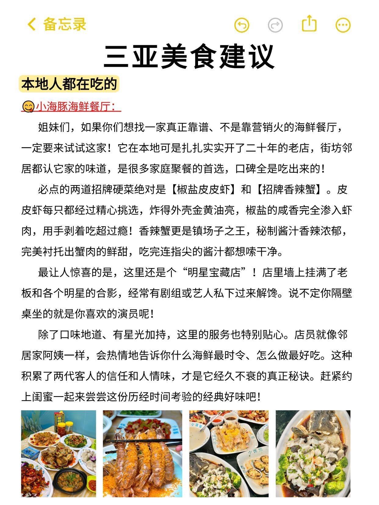 三亚📍五日游丨懒人版不走回头路逛吃攻略。三亚旅行打卡 创作者中心 创作灵感 |||✅五日游线路 Day1:抵达三亚→大小洞天→南山文化→天涯小镇→天涯海角→亿恒夜市 Day2:西岛→椰林海滩→珊瑚墙→牛王岭路→牛王岭赶海→椰梦长廊 Day3:大东海→小东海→帆船港→鹿回头→啤酒工厂沙滩→第一市场夜市 Day4:蜈支洲岛→白沙滩→观海长廊→观日岩→后海村→CDF免税城 Day5:热带森林公园→过江龙索桥→玻璃栈桥→非诚勿扰拍摄地→亚龙湾海滩→太阳湾公路 - 🍱三亚美食 🉑小海豚海鲜餐厅 姐妹们,