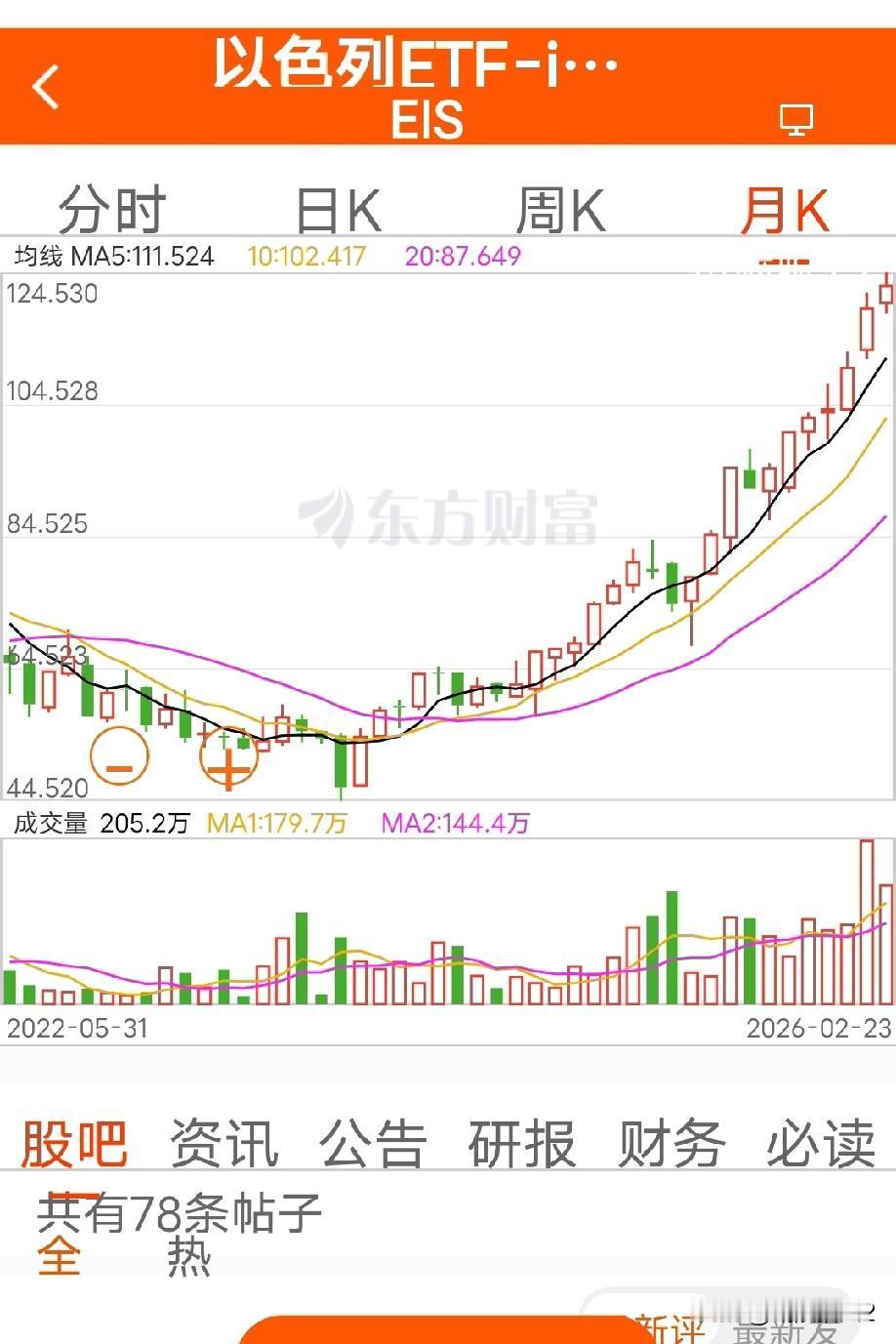 2月24日早评。隔夜欧美市场普跌,美三大指数均收出中阴线(图1)。有人可能又要揶揄:长假过后每到A股开市,全球股市就跌,份佛A股就是电视剧《大时代》中饰演丁蟹的郑少秋,只要他一出场,股市就跌! 事情还真不是这样,欧美股市普跌是有原因的。大家知道,这阵子有一个“热爱和平”的国家,正拿着坚船利炮在阿拉伯海逼迫另一个国家交出浓缩铀并摧毁核设施,战争的阴霾正笼罩在中东上空。一旦战争打响,油气能源供应将影响全球。 逻辑顺理成章,但是有一件事很打脸,大家看一看以色列ETF(图2),居然四平八稳整整上涨了28个月,难道导弹和飞机引擎的高温还能带动股市?也不知道降降温!换成大A,早就泼冷水降温了。以色列,果然是一个热血沸腾的小霸王,什么事在他这里都可以不按理路出牌。开个玩笑。 A股今天上涨是基本确定的,本人更多地认为它是震荡调整中的反弹,不是反转。板块上,虽然我并不看好油气板块,但鉴于上述原因,油价短期有上涨逻辑。并且,资产避险的浓烈情绪正在无脑推动着资金流入风险已经非常高的贵金属板块。通常情况下,金油价格比是20:1,现在是80:1,你们说是金价太高还是油价太低?这个世界,真的有点疯狂了! 个人观点,不构成投资依据,不喜勿喷。祝大家新年好运,开门大吉。