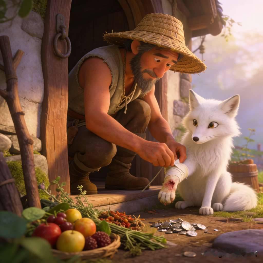 从前,深山里住着一位老实的樵夫,家境贫寒,却心地善良。一日上山砍柴,他发现一只白狐被捕兽夹困住,鲜血直流,模样十分可怜。樵夫于心不忍,小心翼翼地松开夹子,还拿出随身携带的伤药为白狐包扎,之后便将它放回山林。白狐一步三回头,似乎在向樵夫道谢。 从那以后,怪事接连发生。每天清晨,樵夫家门口都会放着新鲜的野果、草药,有时甚至还有几枚碎银,足够他补贴家用。樵夫心里明白,这是白狐在报恩。 村里人得知后,都感叹善有善报。其实世间所有的好运,都藏在你的善良里。人心向善,天必佑之;但行好事,莫问前程。民间故事 白狐报恩 正能量故事 本故事为民间传说,虚构演绎,仅供娱乐
