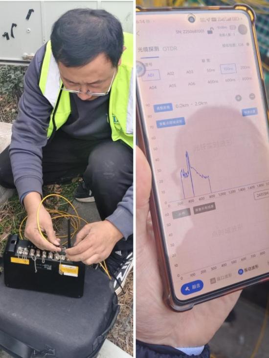 节日里的通信保障刻不容缓,公司接到通知后立即启动应急响应,维护人员11分钟内抵达现场。迁改位置光缆深埋在主干道路口地下,管线交错复杂,人工排查不仅效率极低,还极易造成光缆损伤,定位与迁改难度陡增。为高效破解地下光缆定位难题,维护团队果断启用声呐仪结合AI光缆监测分析系统的创新方案,以精准检测替代人工盲找。设备实时捕捉反射信号并转化为可视化数据,同步传输至现场的AI光缆监测分析终端,为整个迁改工作提供了有效支撑。