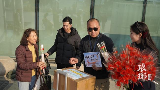 为了迎接远道而来的贵客,临沂市文化和旅游局精心筹备了一场极具中国年味和地方特色的欢迎仪式,为每一位游客献上芬芳四溢的鲜花,致以新春最美好的祝福。更让泰国朋友们惊喜的是,他们还收到了一个寓意吉祥的小红包。与众不同的是,里面装的并非是压岁钱,而是临沂家喻户晓的传统名点——高粱饴糖果。这份别出心裁的新春礼物,既展现了中国春节发红包的传统习俗,又巧妙融入了“临沂味道”。收到这份“甜蜜的祝福”,游客们纷纷面露惊喜,对这一充满心意的当地特产赞不绝口。
