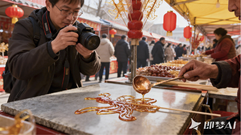 用镜头捕捉糖画的流转光泽、福字的笔墨韵味,将传统之美与新春氛围定格成影像。