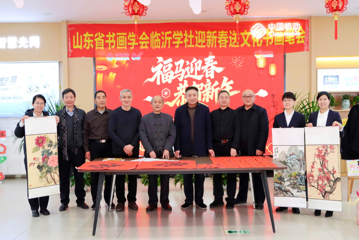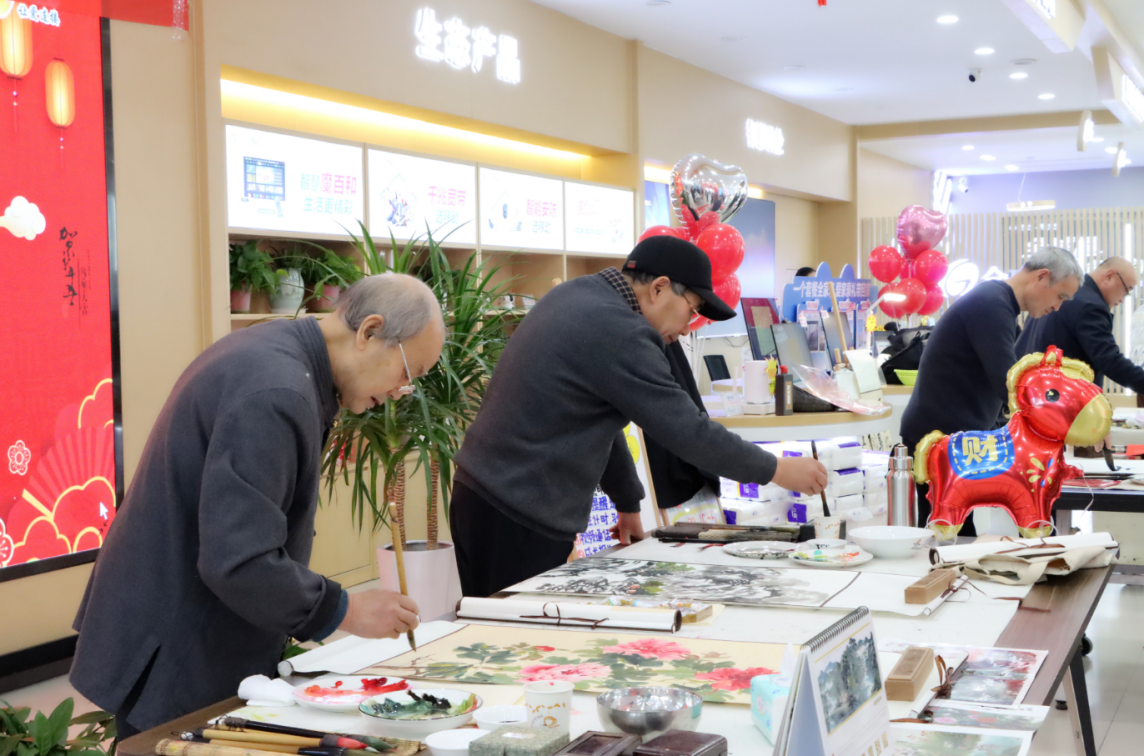 “墨香迎新春”作为全球通客户专属文化环节,成为活动最受瞩目的亮点。营业厅特邀山东省书画学会知名书画家亲临现场挥毫泼墨,各位书画家凝神聚力,笔走龙蛇,一副副饱含马年吉祥寓意的春联、一个个苍劲有力的“福”字跃然纸上。“骏马奔腾开胜景,春风浩荡展宏图”“福满家门伴安康,喜盈庭院迎祥瑞”,每一副春联都寄托着对马年的美好期许,每一个“福”字都承载着最真挚的新春祝福。手写的笔墨温度,区别于机器印刷的便捷,成为全球通客户专属的“年味好礼”,引得客户纷纷驻足观赏、领取留念,现场氛围热烈而温馨。活动当天,约有200余名全球通客户到场参与,在笔墨书香中感受专属礼遇。