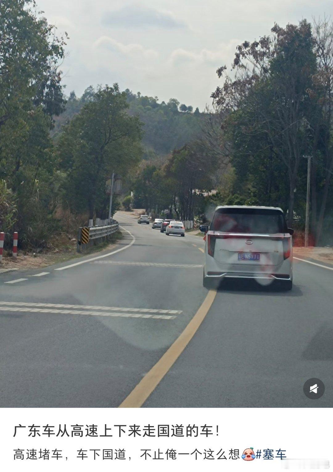 高速堵车大聪明选择下国道绕行 看起来大聪明很多,国道也堵了。所有多次经验告诉我们,节假日出游人和车是真的太多了,我下次要选择错峰出游。