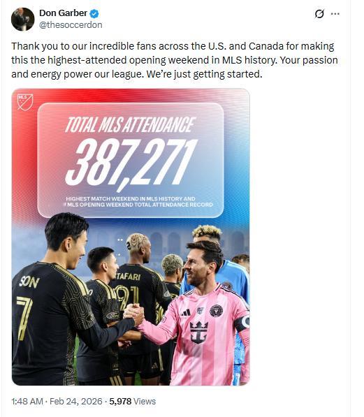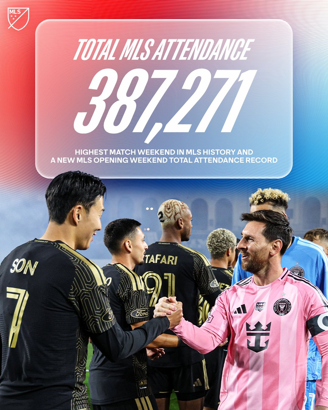 🔥美职联主席社媒更新确认,美职联首轮创造了历史上座率纪录,观众人次达到了387271人!