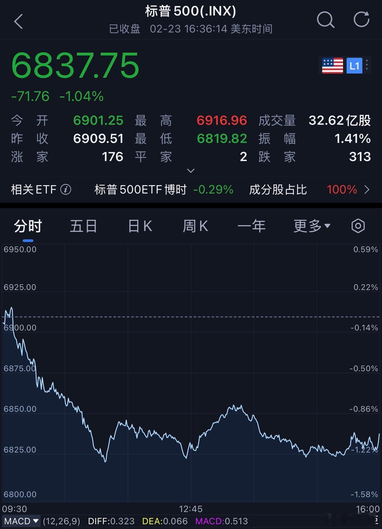 截至收盘,标普500指数跌1.04%,报6837.75点;纳斯达克综合指数跌1.13%,报22627.27点;道琼斯工业平均指数跌1.66%,报48804.06点。