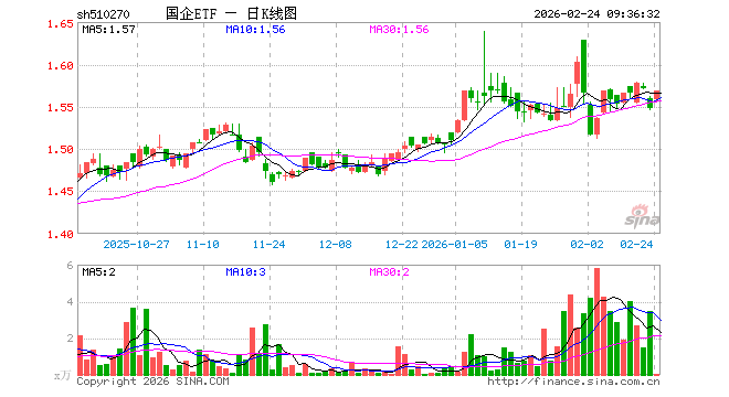 2月24日,国企ETF(510270)开盘涨0.65%,报1.558元。国企ETF(510270)重仓股方面,贵州茅台开盘涨2.40%,紫金矿业涨4.53%,长江电力涨0.50%,招商银行涨1.27%,中信证券涨0.51%,国泰海通涨0.25%,兴业银行涨0.32%,工商银行涨0.28%,中国船舶涨0.94%,万华化学涨1.67%。