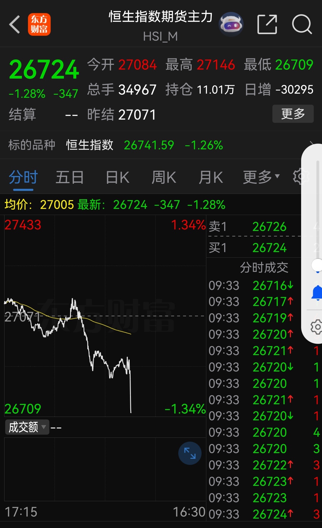 早盘恒生指数持续走弱!引领者做空恒生,收到春节红包。