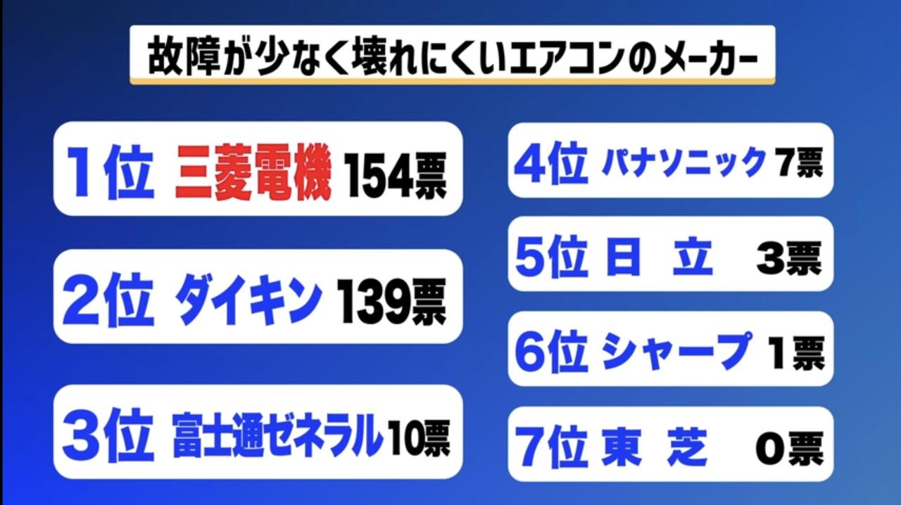 300位空调从业者的问卷调查显示:三菱和大金得票最多👍👍👍 品牌包括三菱、