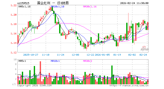 2月24日,截止午间收盘,国企红利ETF(159515)涨1.46%,报1.184元,成交额219.17万元。国企红利ETF(159515)重仓股方面,中远海控截止午盘涨3.28%,潞安环能涨4.40%,山煤国际涨5.06%,平煤股份涨0.80%,恒源煤电涨1.55%,山西焦煤涨3.01%,陕西煤业涨3.78%,西部矿业涨2.60%,兖矿能源涨3.29%,厦门国贸涨1.22%。