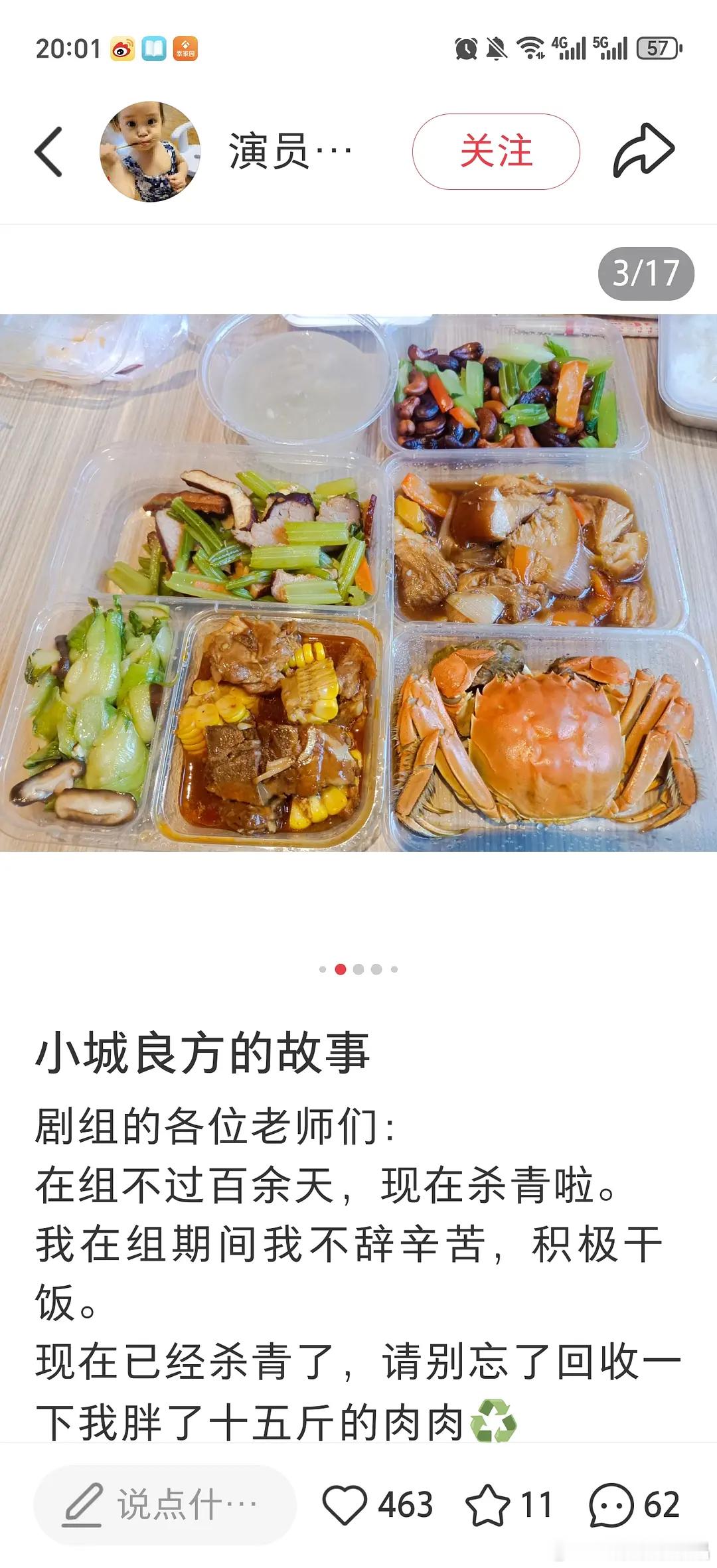 小城良方剧组伙食也太好了吧!不仅仅有蔬菜和各种肉,居然还有大闸蟹和皮皮虾。