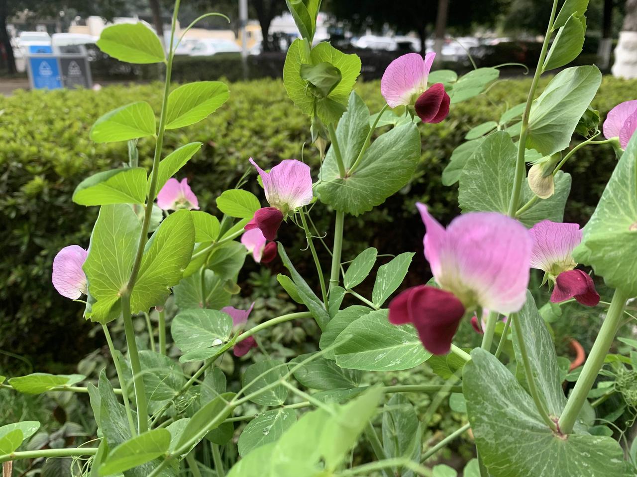 刚遇见,一朵一朵,小巧,好看,洁净,身上有仙气。像一群天上来的小仙娥。主人种在花盆里,应该是豌🫘花吧! 花形似蝴蝶,如童诗《蝴蝶·豌豆花》中以“飞起来的花”,形容其灵动之美。遛娃,赏花,一举两得,哈哈😄