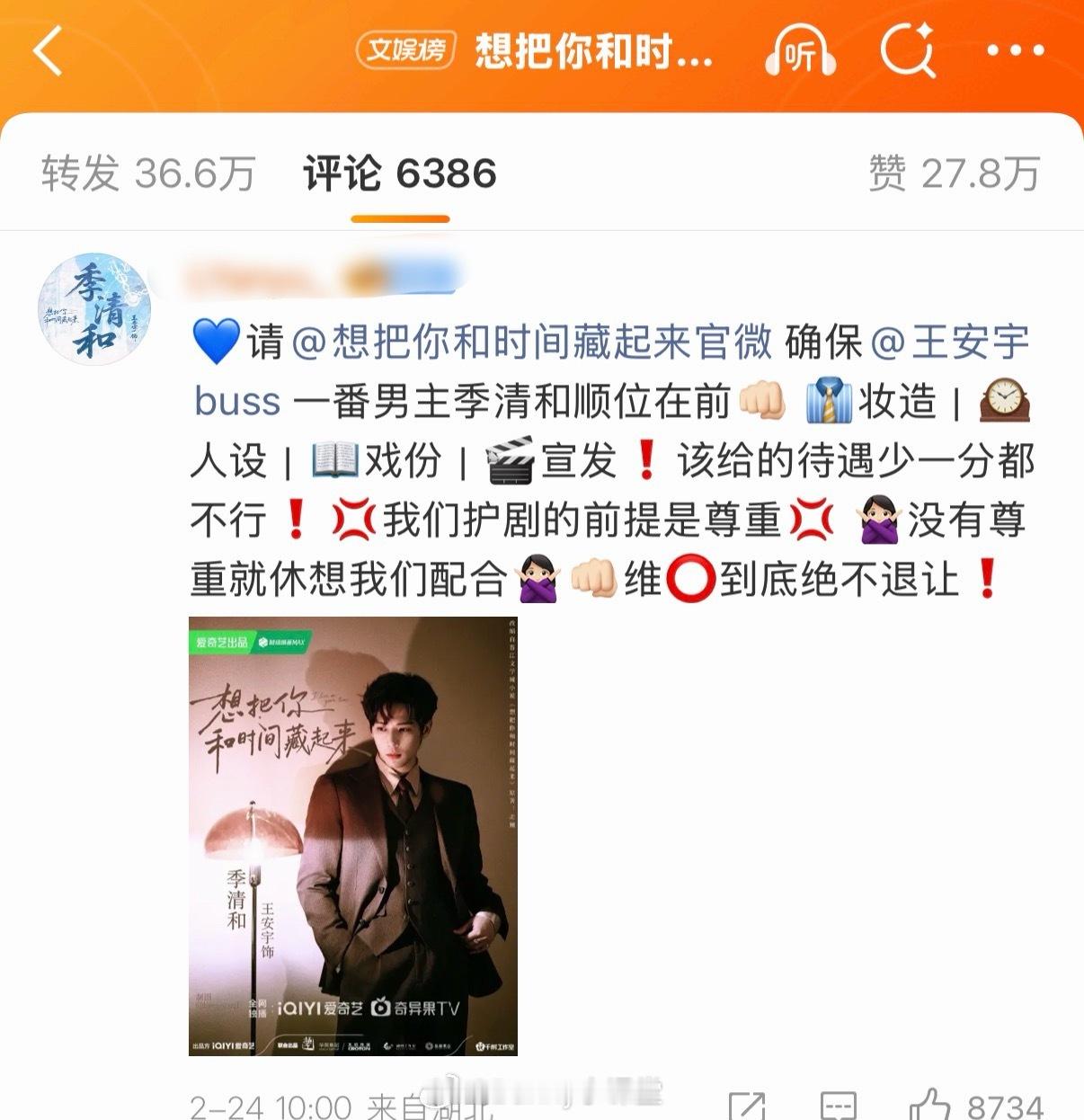 想把你和时间藏起来官宣章若楠、王安宇排名不分先后,评论区粉丝各自说一番男主和一番