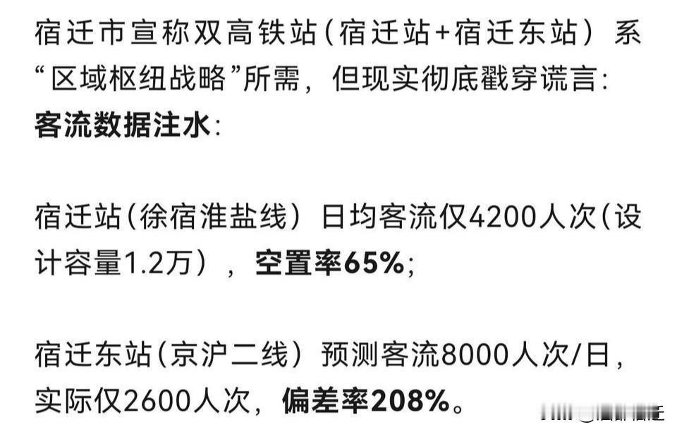 宿迁站于2019年12月方才通车,至今不过6年多时间,竟有人造谣称“已通车十年”,这完全与事实相悖。 所谓“使用率低于80%”的说法,更是荒谬至极。在春运、五一、国庆等节假日以及周末,宿迁站始终处于客流高峰状态。2025年春运期间,到发旅客超过107万人次,假期单日到发量最高接近2.5万人次,线路运力紧张,车站运行饱和,何来“低使用率”一说? 宿迁东站目前仍在建设中,预计2028年投入使用,它是潍宿高铁、合宿高铁等多线交汇的综合枢纽。官方从未发布过“日均客流仅2600人次”的预测数据,这纯属恶意编造、抹黑之举。 盼望高铁发展可以理解,但造谣传谣、挑拨市域矛盾,这种行为更不可取!