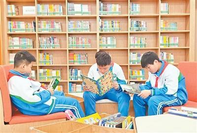 雄安新区北沙小学学生在图书馆内阅读。本报记者张艺开摄