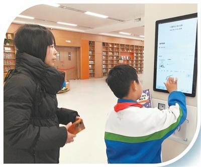 雄安图书馆内,小学生通过智能书柜检索图书。人民网记者孙博洋摄