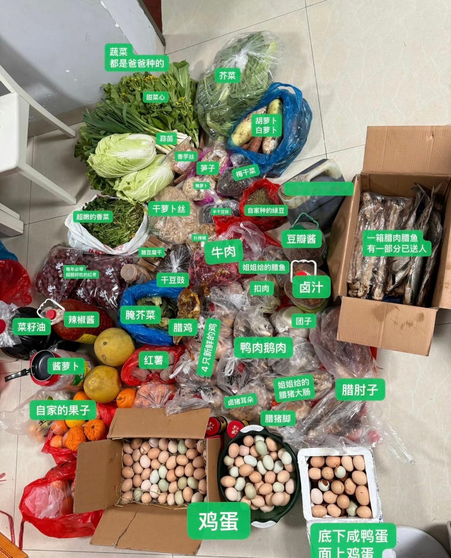 塞满的是后备箱温暖的是游子心返程的后备箱直接被爸妈塞成移动杂货铺!新鲜蔬菜、活鸡