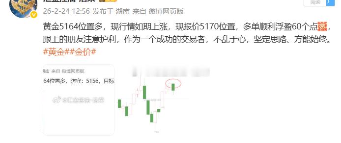 黄金5164位置多,现行情上涨至5184位置,多单止盈200个点,新年开门红顺利拿下二百点收益,行情起落之间,机会与风险并存。保持耐心,保持定力,才是交易中最难得的本质。黄金金价