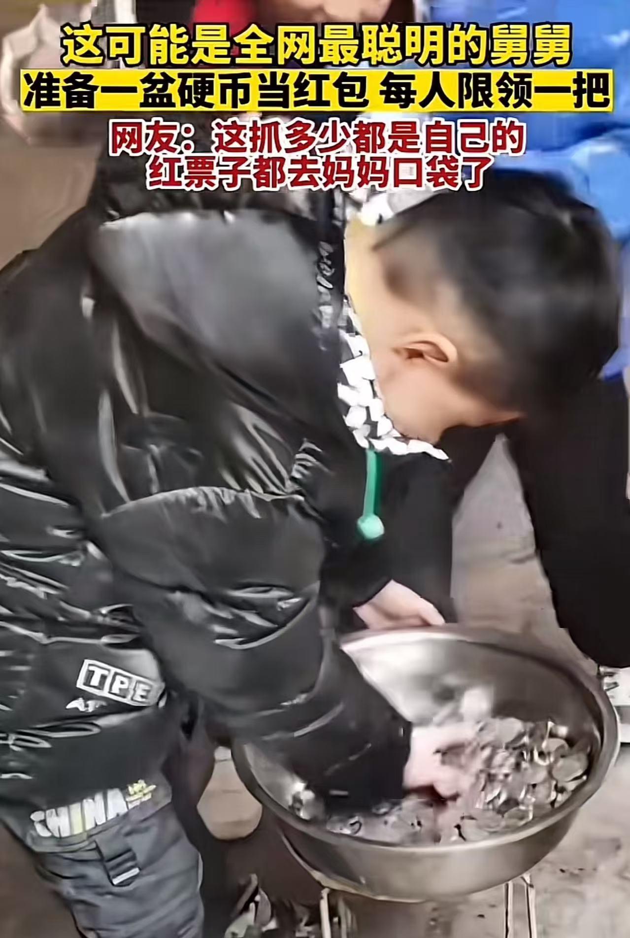 “全网最聪明的舅舅!”过年舅舅不准备红包,只给外甥们准备了一盆硬币当红包,每人限领一把!外甥们高兴坏了,心甘情愿地给舅舅磕头拜年!网友:“这抓多少都是自己的,红票子都去了妈妈的口袋里!” 大年初三,鞭炮声此起彼伏,红灯笼在屋檐下随风摇晃。舅舅阿强在院子摆着一个钢盆,盆里装满了一元硬币! “来来来,都过来!”阿强拍了拍手,招呼着围在门口的孩子们。 这些都是他的外甥和外甥女。往年这时候,阿强都得准备十几个红包,每个里面塞200块钱,几千块就这么出去了。 今年,他换了个玩法。让孩子们自己抓硬币,抓到多少算多少! 这话一出,孩子们炸了。 要知道,这些孩子过年收红包,有个"潜规则"。 红包刚到手,妈妈就过来了:“来,妈妈帮你收着。” “存银行,以后给你交学费。” “这么多钱,小孩子别乱花。” 钱转了一圈,最后都进了妈妈的口袋。 孩子们心里清楚,但从来没说过。 可今天不一样。硬币,抓一把,装兜里,谁也拿不走。 堂屋里笑声一片。 孩子们蹲在地上数钱,有的把硬币排成排,有的往兜里塞,还有的互相比较谁抓得多。 阿强坐在旁边,看着孩子们笑,自己也笑了。 他想起自己小时候,过年收的那几块钱压岁钱,也是揣在兜里,舍不得花,数了一遍又一遍。那时候的快乐,很简单。 现在的孩子,红包收得越来越多,快乐却越来越少了。 孩子们的妈妈们在旁边看着,有人摇头,有人笑。 “你这当舅舅的,也太抠了吧?"”阿强的姐姐打趣道。 “抠啥呀!”阿强说,“钱到孩子手里,才是压岁钱。到你们手里,那是人情往来。” 【网友热议】 “这个舅舅真聪明,钱花的不多,却给孩子们一个大大的惊喜!” “这个舅舅懂孩子!也是在总结回顾自己的童年。” “太抠门了,小孩子都只能抓个几十元钱,越小的越少!” “多少不重要,重要的是孩子开心。” 【观点解析】 这位“硬币舅舅”之所以能火,不是因为他多聪明,而是他戳破了压岁钱这件事上最大的谎言——钱到底是谁的? 名义上是孩子的压岁钱,实际上是大人的人情债。 你给谁家孩子200,你家孩子就从他家收200,转来转去,钱没到孩子手里,人情却欠了一圈。孩子成了收礼的工具,红包成了社交的筹码。 阿强的聪明之处在于,他绕过了这个怪圈。 硬币不多,但是真的;抓一把不多,但孩子能做主。这份"做主"的感觉,比钱本身更珍贵。 说到底,过年过的是团圆,不是账本。 阿强用一盆硬币,换来了孩子们最真实的笑容——这笔账,怎么算都值。