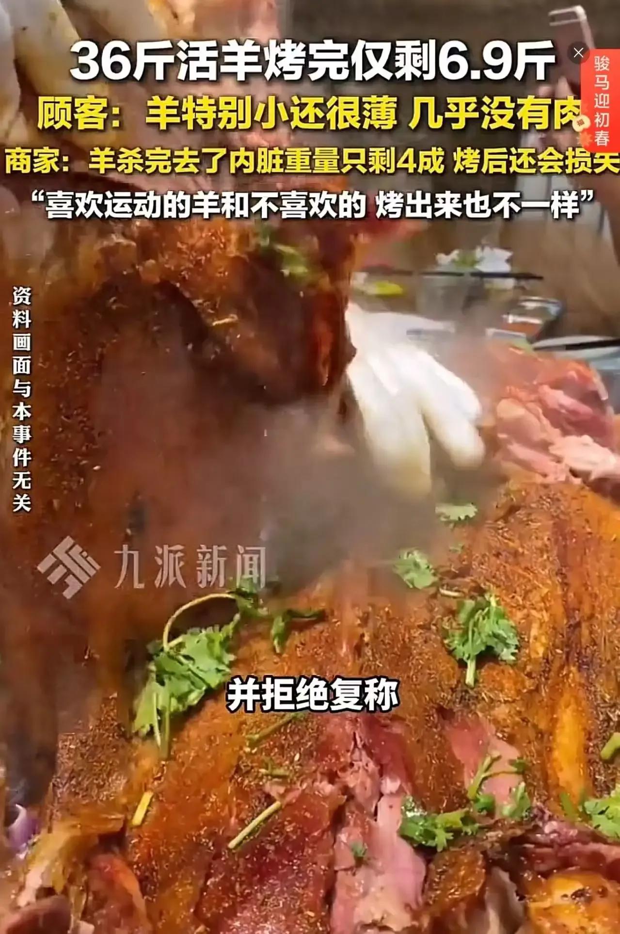 除夕夜吃烤全羊,本应是阖家欢乐的时刻,可重庆一女子却遇到了糟心事!她带着家人去吃36斤的烤全羊,结果烤完只剩6.9斤,这缩水也太严重了吧! 据了解,这名女子在除夕夜带着家人兴高采烈地去吃烤全羊,原本想着36斤的羊足够一桌人享用,可没想到烤完之后,羊肉严重缩水,只剩下6.9斤。这差距可不是一般的大,根本不够一桌人吃。女子怀疑商家在烤制过程中偷梁换柱,将原本的羊肉换成了其他肉或者减少了分量。于是,她要求商家进行复称,以证明羊肉的重量。然而,商家却拒绝了女子的要求,坚称这是正常现象。这一举动让女子更加怀疑,也引发了网友们的热议。有网友表示,再弄一只36斤的小羊烤了就知道结果了,看看是不是真的会缩水这么多。也有网友认为,商家可能存在欺诈行为,应该受到相应的处罚。 这起烤全羊缩水事件引发了广泛关注,也让我们对商家的诚信问题产生了思考。大家觉得商家是否存在欺诈行为呢?快来评论区发表你的看法吧,一起探讨探讨!烤全羊 全羊烤全羊 烤全羊去皮 羊烤全羊 重庆烤全羊 烧烤全羊