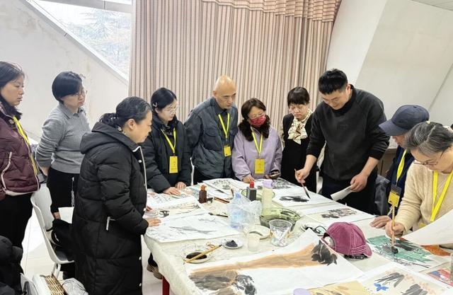 课堂上,导师通过现场笔墨示范,直观呈现从具象物象到抽象笔墨的转化过程。学员们结合课程内容,对照作品仔细观摩,在导师的指导下交流探讨,从笔墨的抽象表达中读懂画家对具象物象的艺术重构,对写意画“重气韵、求本真”的特质有了更深刻的理解。