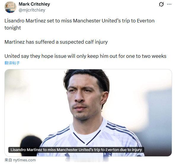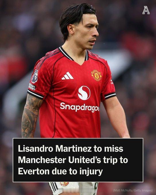 【利马伤停两周】TA消息,埃弗顿0比1曼联,主力中卫利桑德罗-马丁内斯没有进入比赛大名单,约罗与马奎尔搭档首发中卫,海文替补登场。