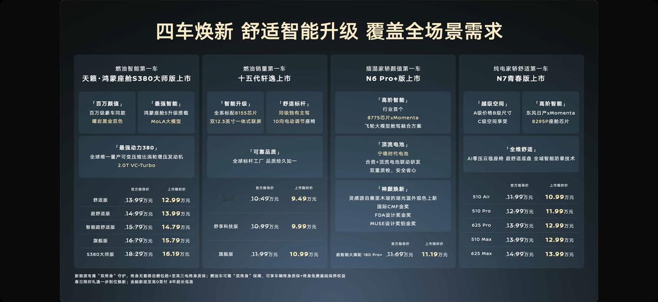 东风日产以“做一款成一款”的严选标准打造家轿天团 十五代轩逸、天籁・鸿蒙座舱 S380 大师版、N6 Pro + 版、N7 青春版四车齐发、油电同进,让老百姓买车可以放心买不踩坑。 说实话,之前看十五代轩逸的渲染图,总觉得改款也就那样,没抱啥期待,结果前两天见到到店实车,是真的有被惊喜到。 以前大家买轩逸,图的都是踏实省心,外观得体但少了点个性,而十五代轩逸明显是想和年轻人交朋友。宽体低趴的车身搭配流畅溜背线条,再加上9万级标配高通骁龙8155芯片加双联屏。这就是国民家轿的进阶,东风日产手握超600万用户信赖,跟着中国家庭的审美变化不断升级。 现在开着新轩逸出门,邻居估计不会再问 “这车省油吧”,反倒会惊讶:“轩逸居然这么智能?” 轩逸开年上市日产四车齐发 轩逸9万级双联屏大沙发双标配