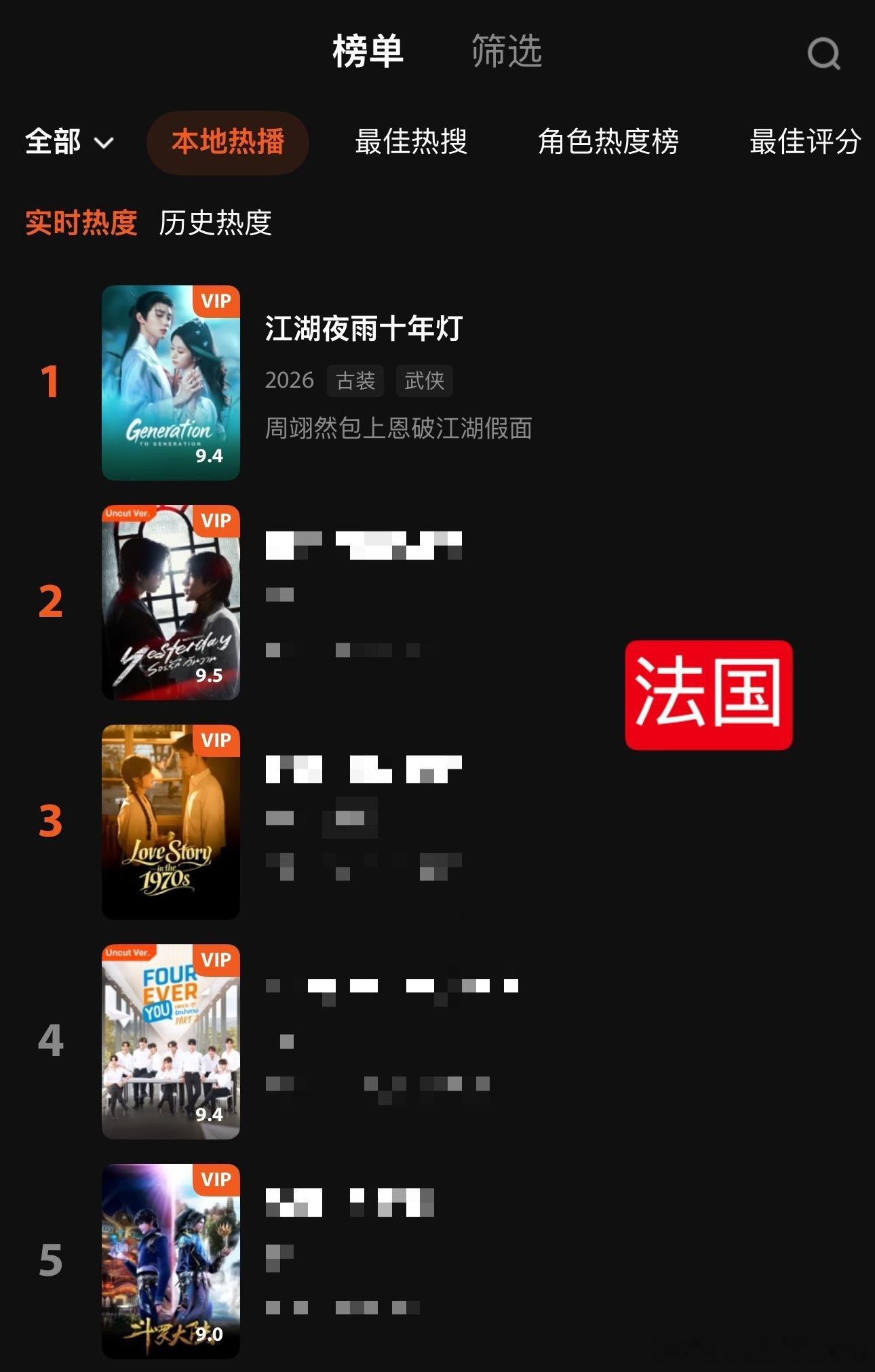 江湖夜雨十年灯海外人气 为江湖夜雨十年灯的文化输出点赞,剧情上头,人设也很有新