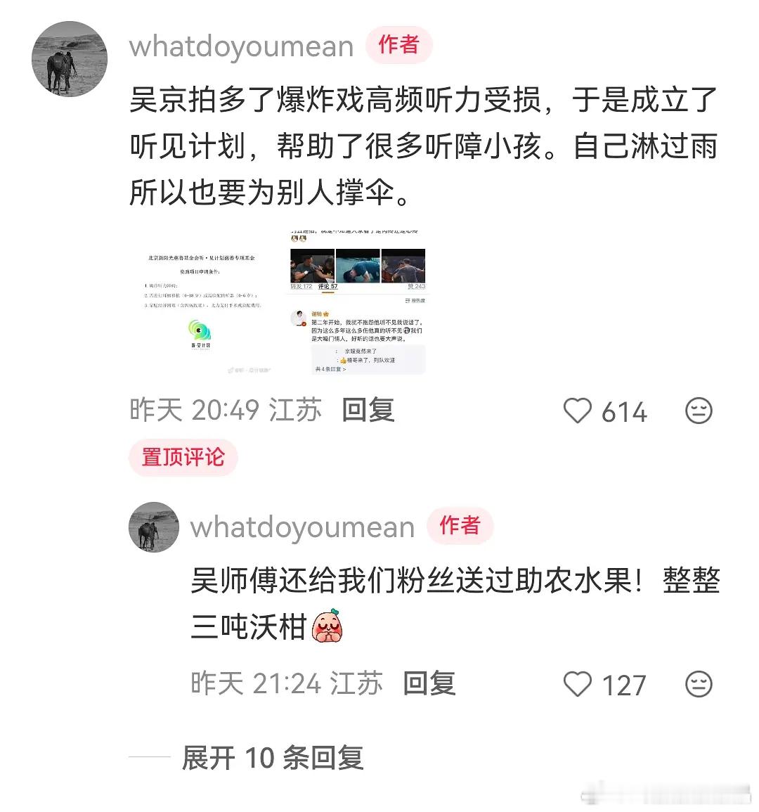 吴京曾经资助一个白血病孩子二十几万,还成立了听见计划,帮助了很多听障小孩。