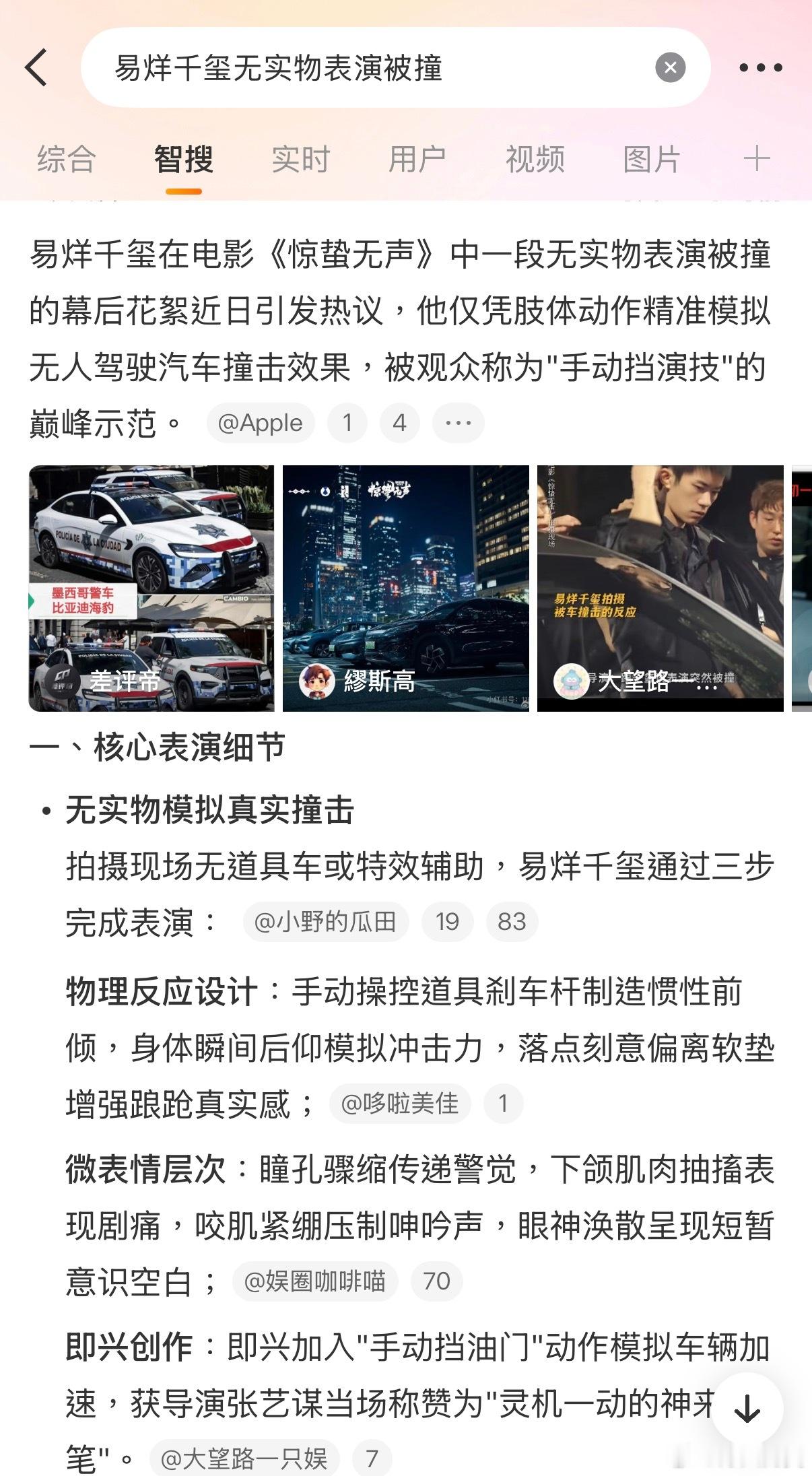 就是他演被撞的那一下。整个人被撞击力,惯性向前冲。这种戏最难的地方在于,明明前面什么都没有,没有真的车撞过来,没有实际的冲击力,但易烊千玺得要对着空气演出那种被外力猛然抛出去的感觉。