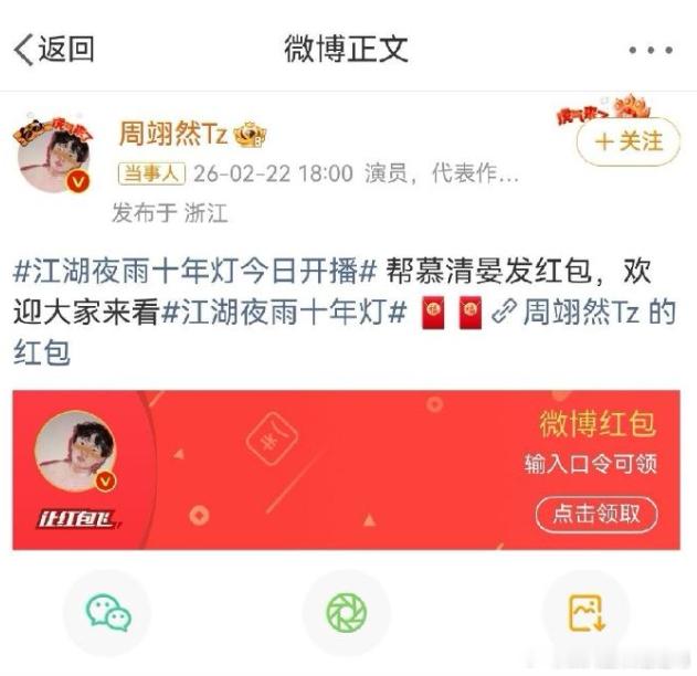 明星红包剧宣真的流行起来了!彭昱畅《年少有为》每天10000,连发13天,白鹿和王星越《唐宫奇案》开播第二天补发了49999大包,陈飞宇和孙千《纯真年代的爱情》也分别发了49999和28888,周翊然和包上恩的《江湖夜雨十年灯》,周翊然发了20000红包,艺人剧宣多了红包剧宣的渠道,涨粉还挺快的。