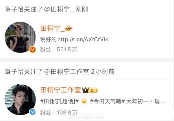章子怡关注田栩宁工作室田栩宁的路真的越走越远越好呀,希望可以一路长虹加油