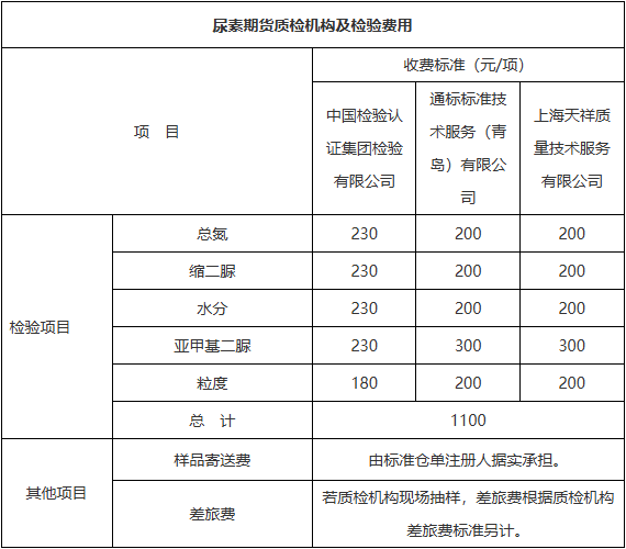 经研究决定,将尿素期货质检费用调整如下,自公告之日实施。