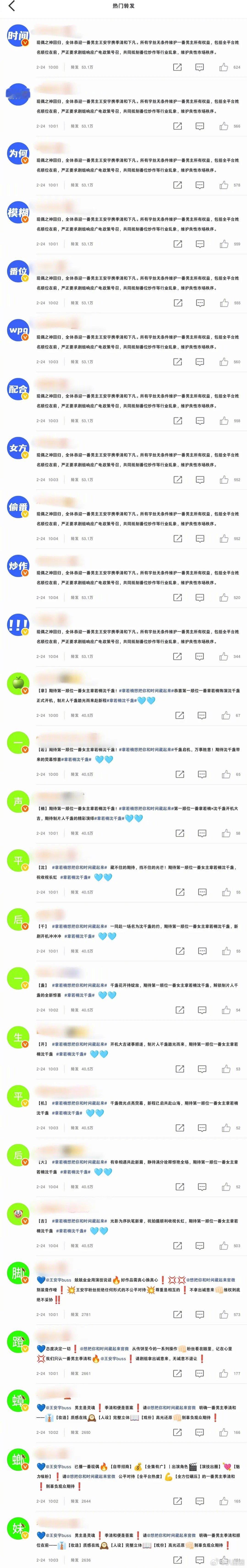 王安宇粉丝章若楠粉丝排字,不是排名不分先后吗~