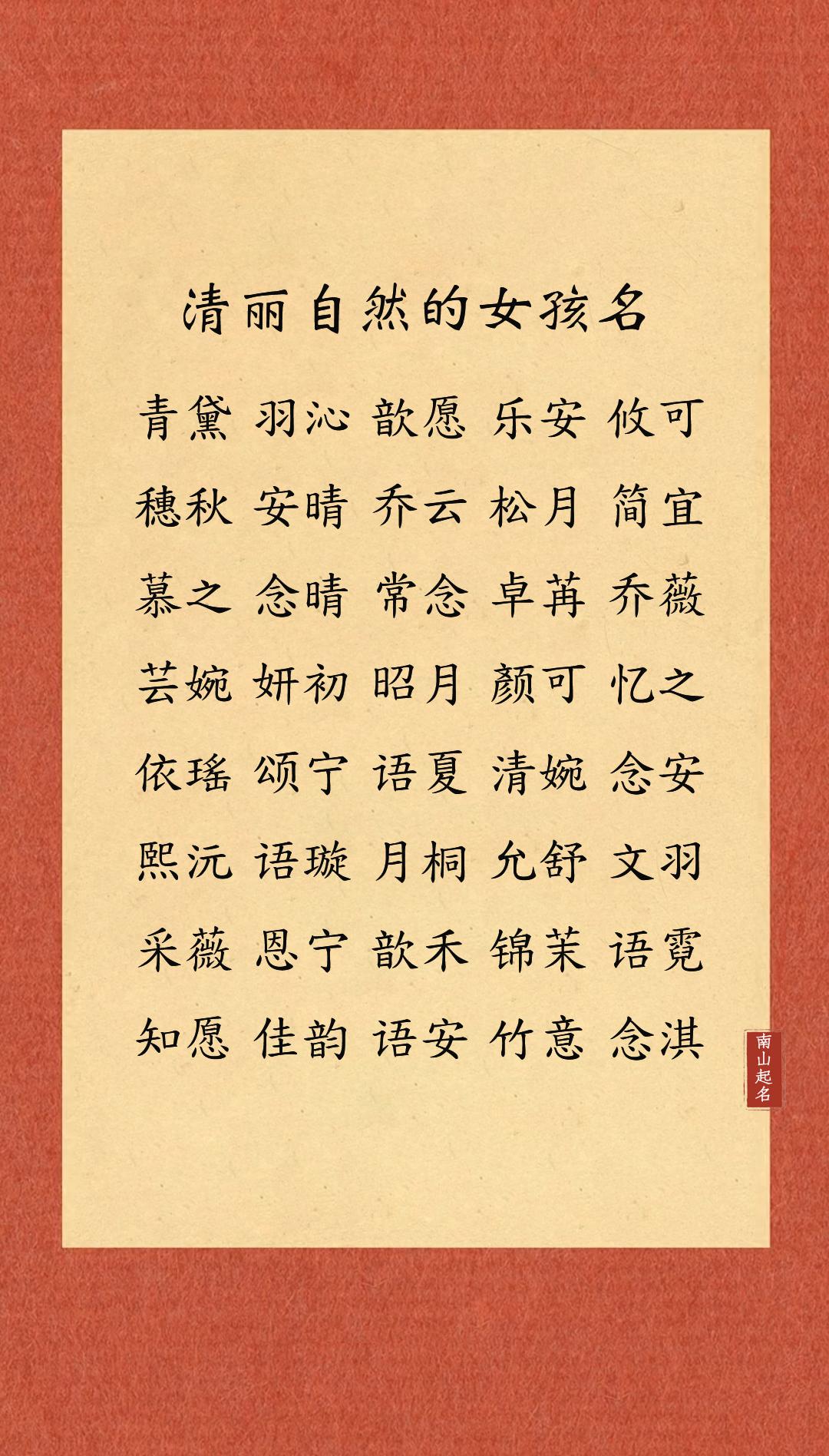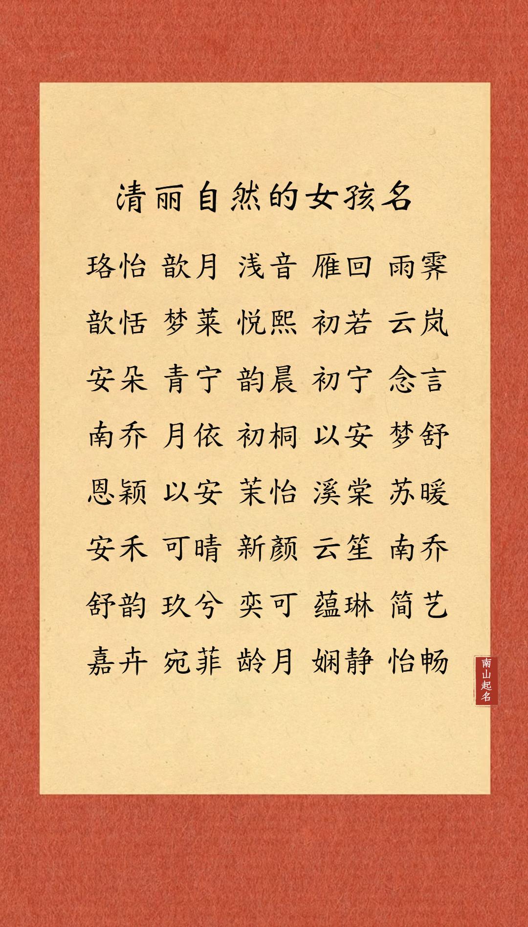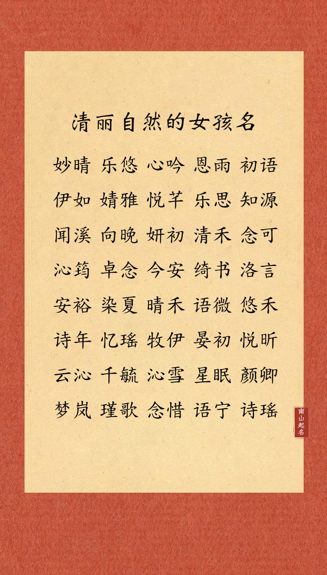 清丽自然的女孩名,朗朗上口不失韵味,给人一种舒服的亲切感女孩名