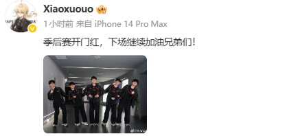 战胜TES后,Xiaoxu发文:季后赛开门红,下场继续加油兄弟们