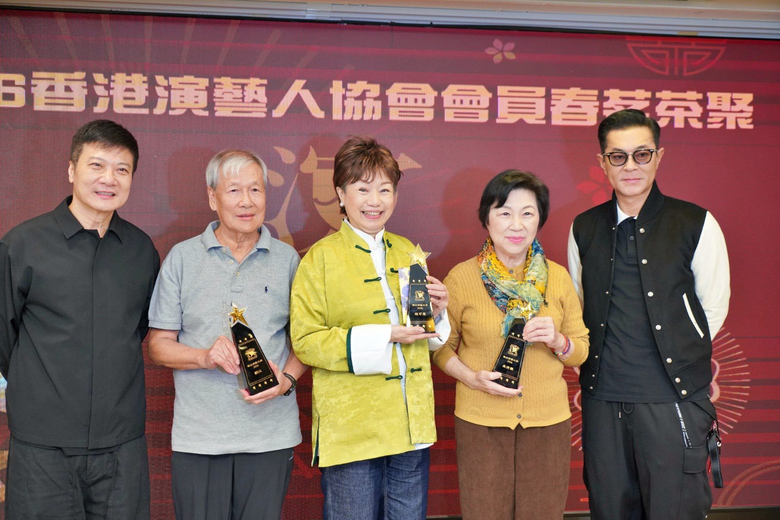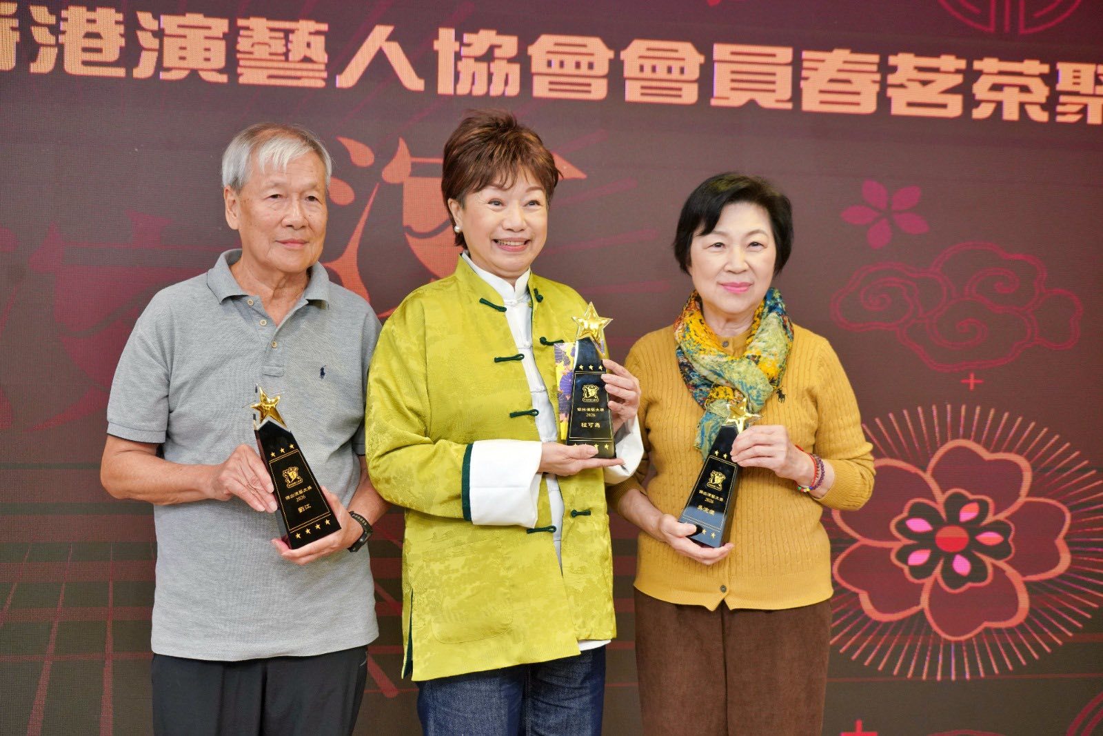 除了抽奖环节,席间还颁发了 “杰出演艺大奖”,以表彰多年来为演艺界贡献良多的前辈艺人。今年由吴浣仪、程可为、刘江荣获该奖项,三人从古天乐和钱嘉乐手中接过奖项。
