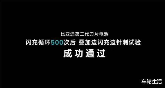 关于安全问题。第二代刀片电池通过了一系列远超新国标的严苛安全试验,确保电池全生命周期的安全稳定,彻底打消用户的安全顾虑。比如说500次闪充循环后,边闪充边针刺试验,二代刀片电池表现稳定,没有起火、热失控。要知道,500次闪充循环,于一款车而言,起码已经开了二三十万公里了,于私家车而言,这样的公里数恐怕换车时候也跑不到。还有第二代刀片电池进行了热扩散试验、底部撞击试验,这车试验比亚迪都通过远超国标的标准来充分夯实第二代刀片电池的安全,让大家买的放心。