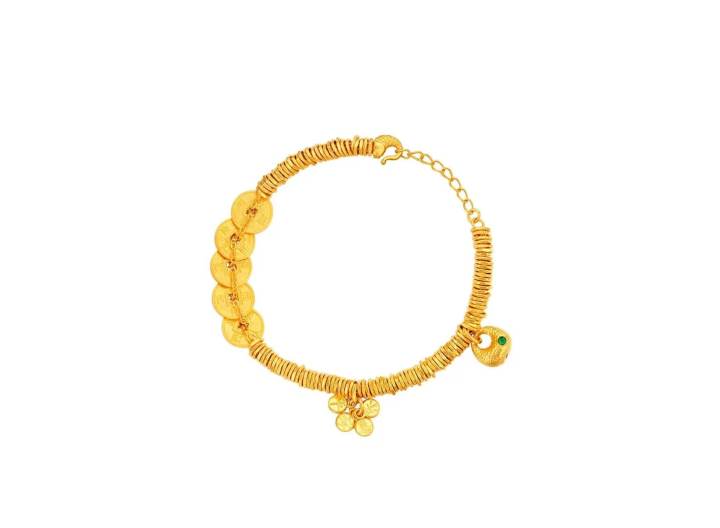 一条27克左右的五帝钱金手链,原价53800元,即将涨到71800元,相当于两三个月时间涨价18000元。