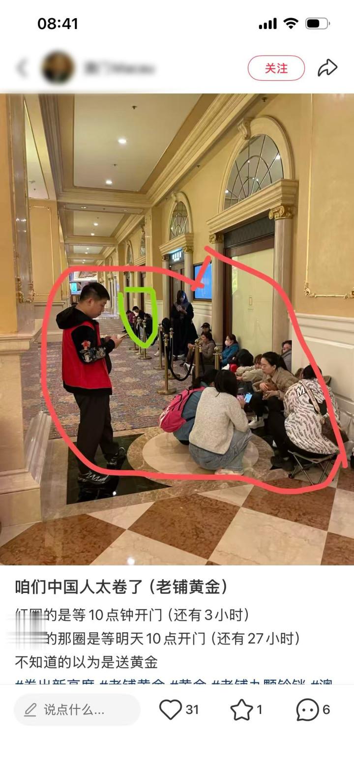还有澳门的网友在春节前发现神奇的一幕,澳门老铺黄金门前出现了两支等待开门的队伍:大门右边一堆人等着当天商场10点开门(当时距离开门还有3个小时),大门左边则是等待第二天10点开门的队伍(还有27个小时)。“不知道的以为是送黄金!”
