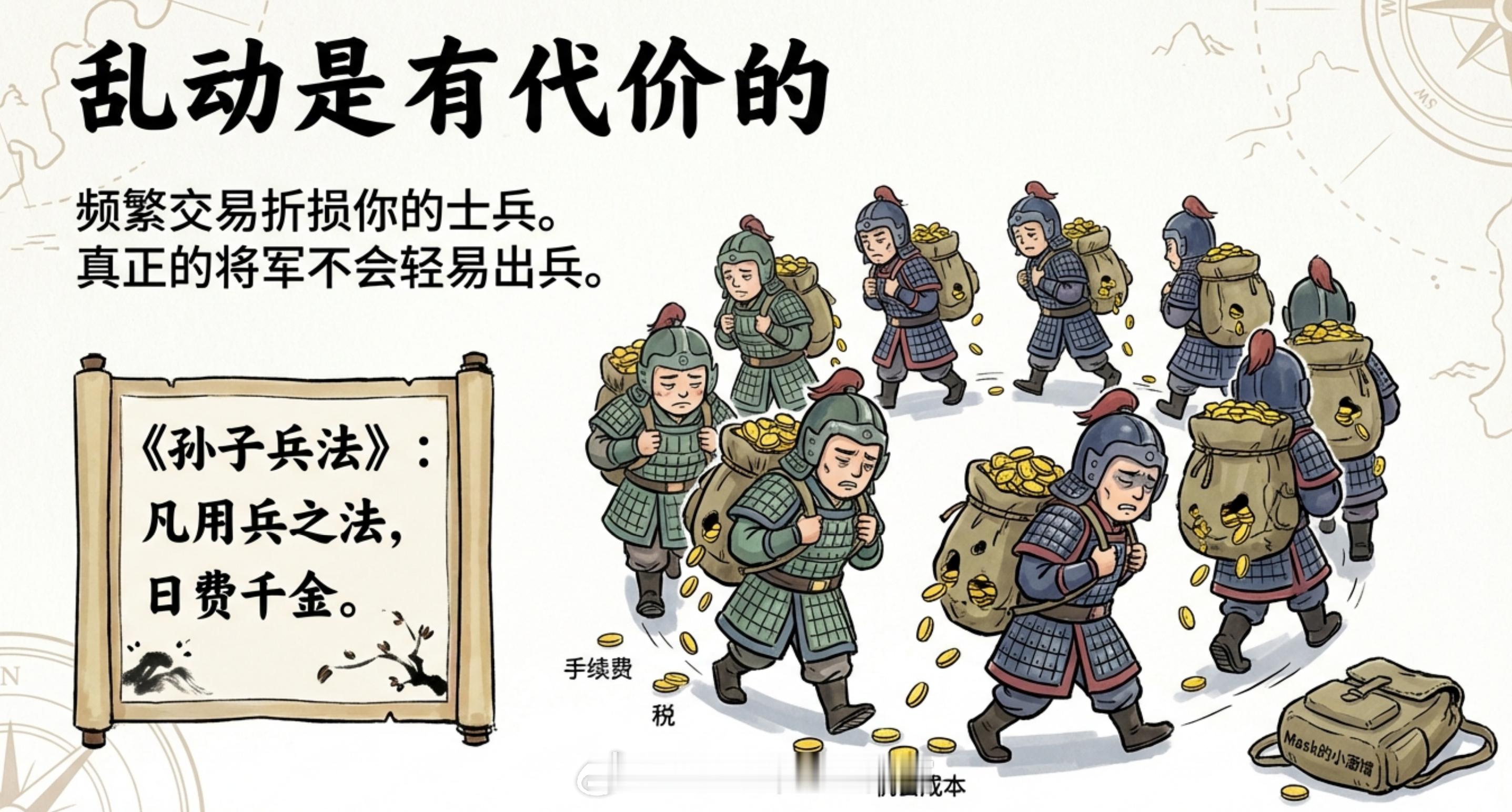 你不是在买一张纸,你是在调兵遣将。每一次出手,都要有充分的理由,都要找到那条地道。四、孙子兵法早就说过:乱动是有代价的《孙子兵法》里有一句话:「凡用兵之法,日费千金。」