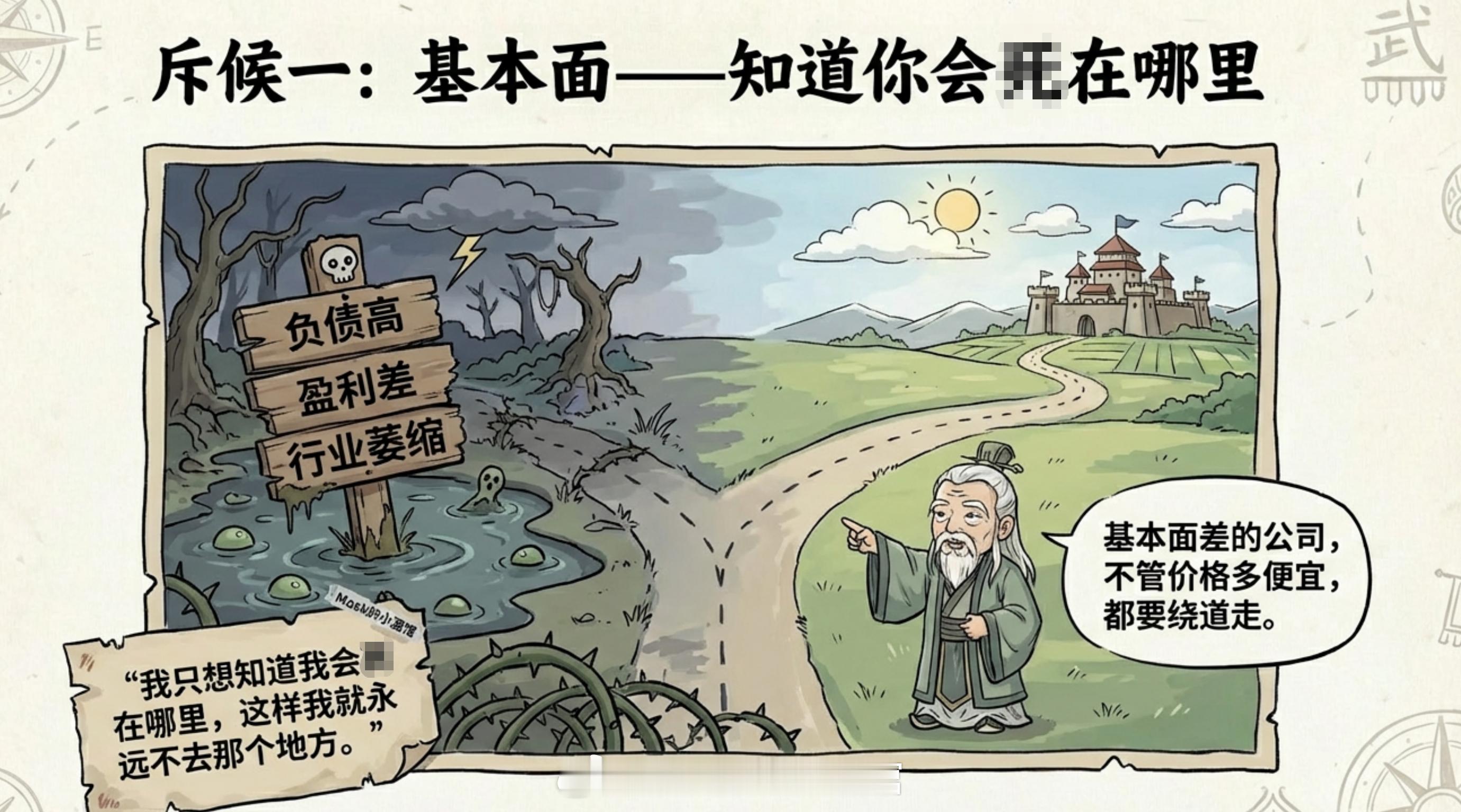 先看基本面。基本面就是这家公司到底好不好。它有没有稳定的盈利能力?它的产品有没有竞争优势?它的负债多不多?它所在的行业,未来是在增长还是在萎缩?芒格说过一句话:「我只想知道我会亖在哪里,这样我就永远不去那个地方。」用在投资上,意思是:先搞清楚什么样的公司会让你亏钱,然后避开它。基本面差的公司,不管价格多便宜,都要绕道走。