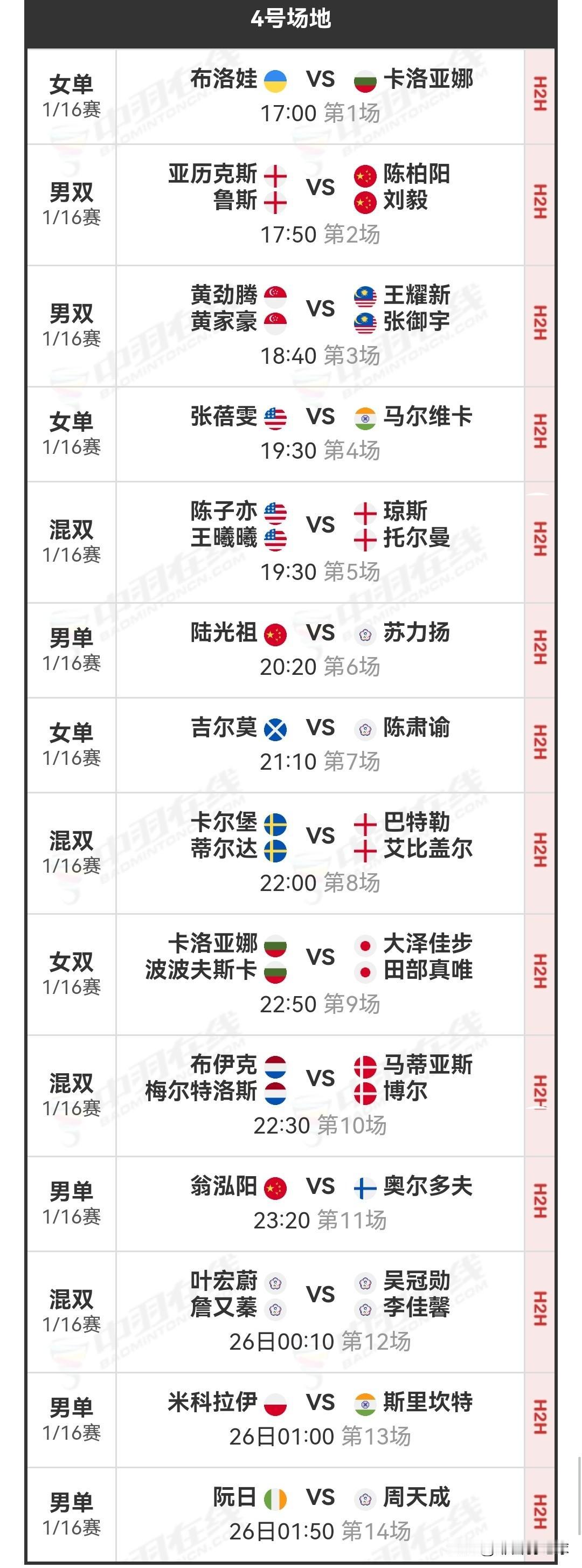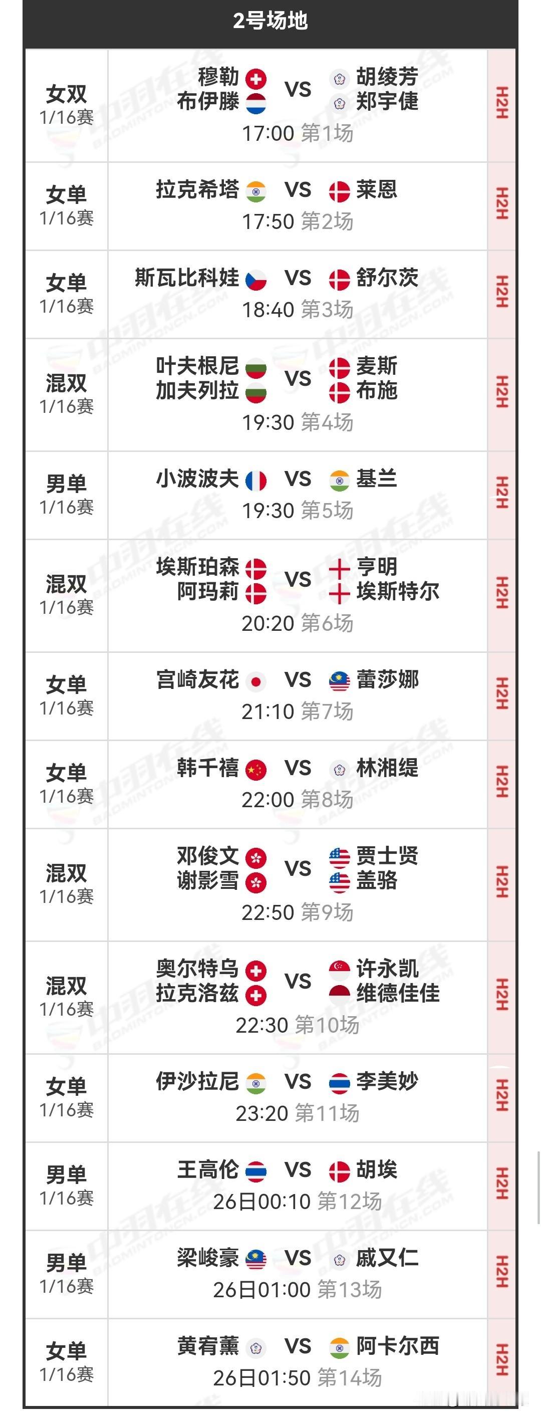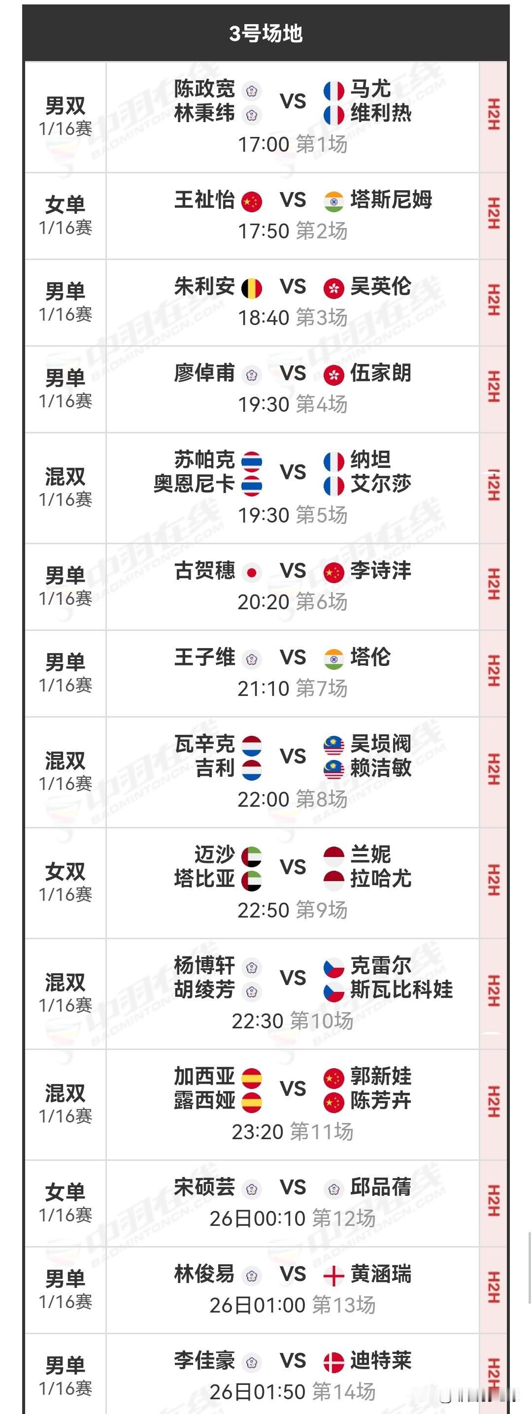 2月25日德国羽毛球公开赛1/16决赛(二)安排 昨日赛事首日,国羽三场比赛皆