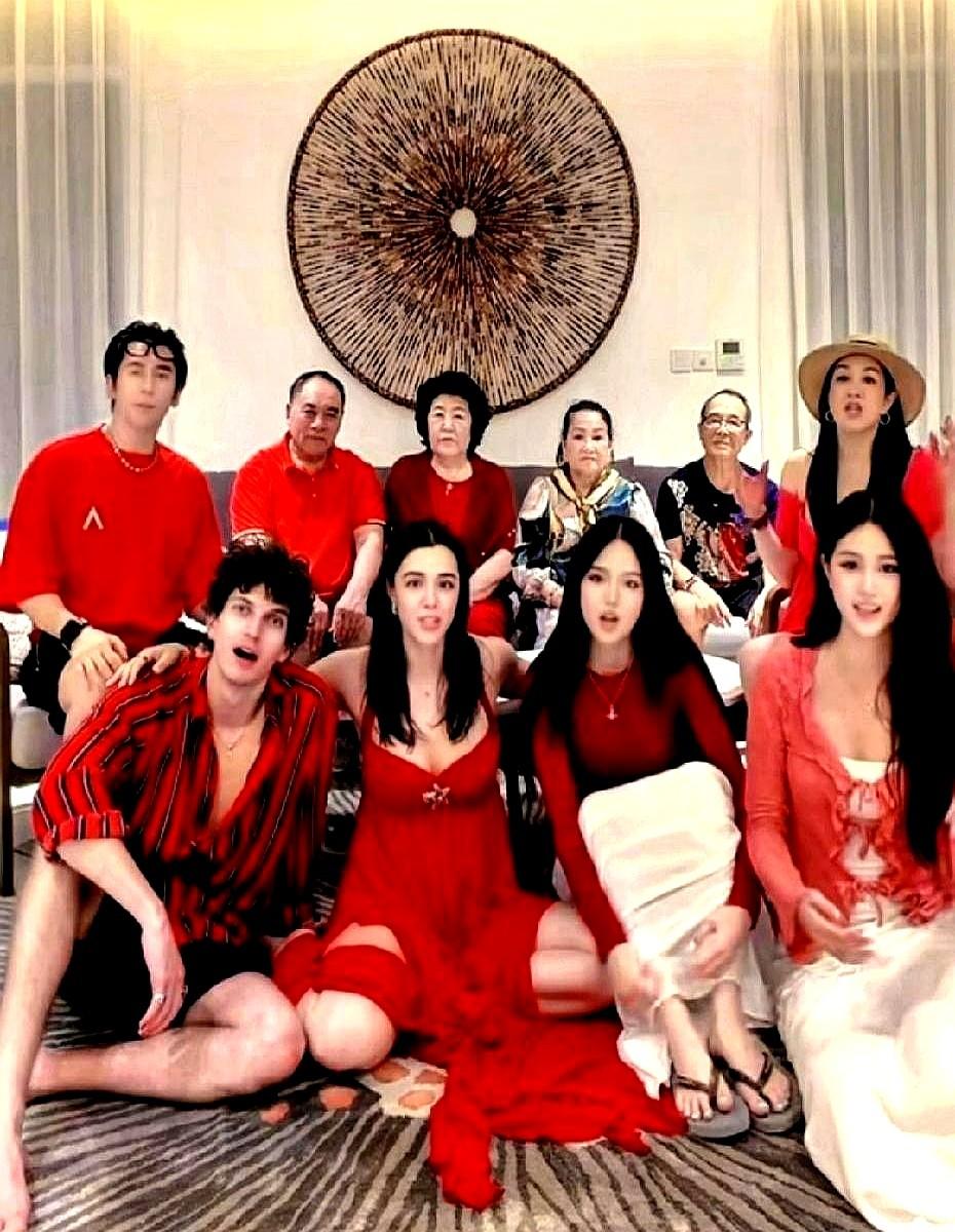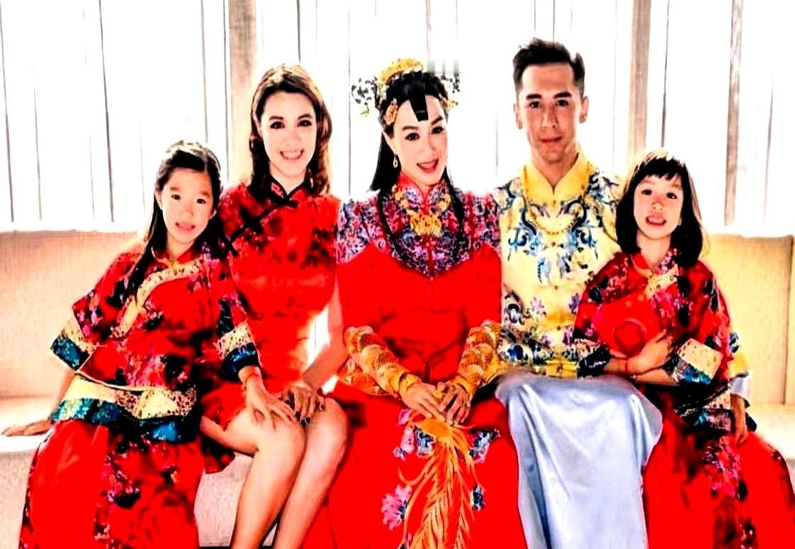 谁能想到,这张全家福里,最抢镜的不是穿红色低胸吊带的大女儿,而是56岁的钟丽缇。